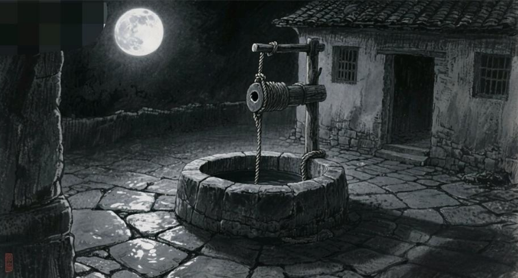 井臺邊,月亮在打水