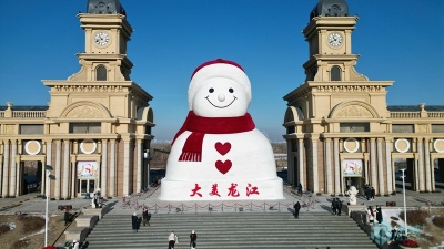 12月14日,正在建設中的哈爾濱群力音樂公園網紅大雪人頭部已完成,露出憨態可掬的笑容。今年回歸的大雪人將在保留紅帽子、紅圍脖、紅色愛心紐扣“經典皮膚”的基礎上,再次升級。設計身高19米、長14米、寬11米,比往年“長高”1米,總用雪量超過3000立方米,比往年增加1200立方米,達到歷年之最。