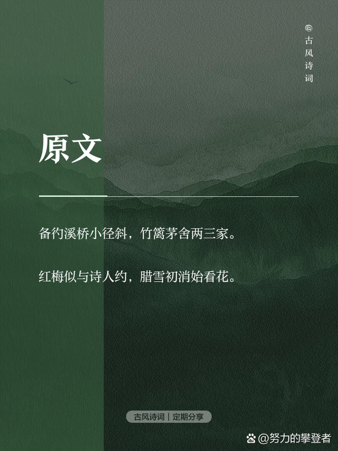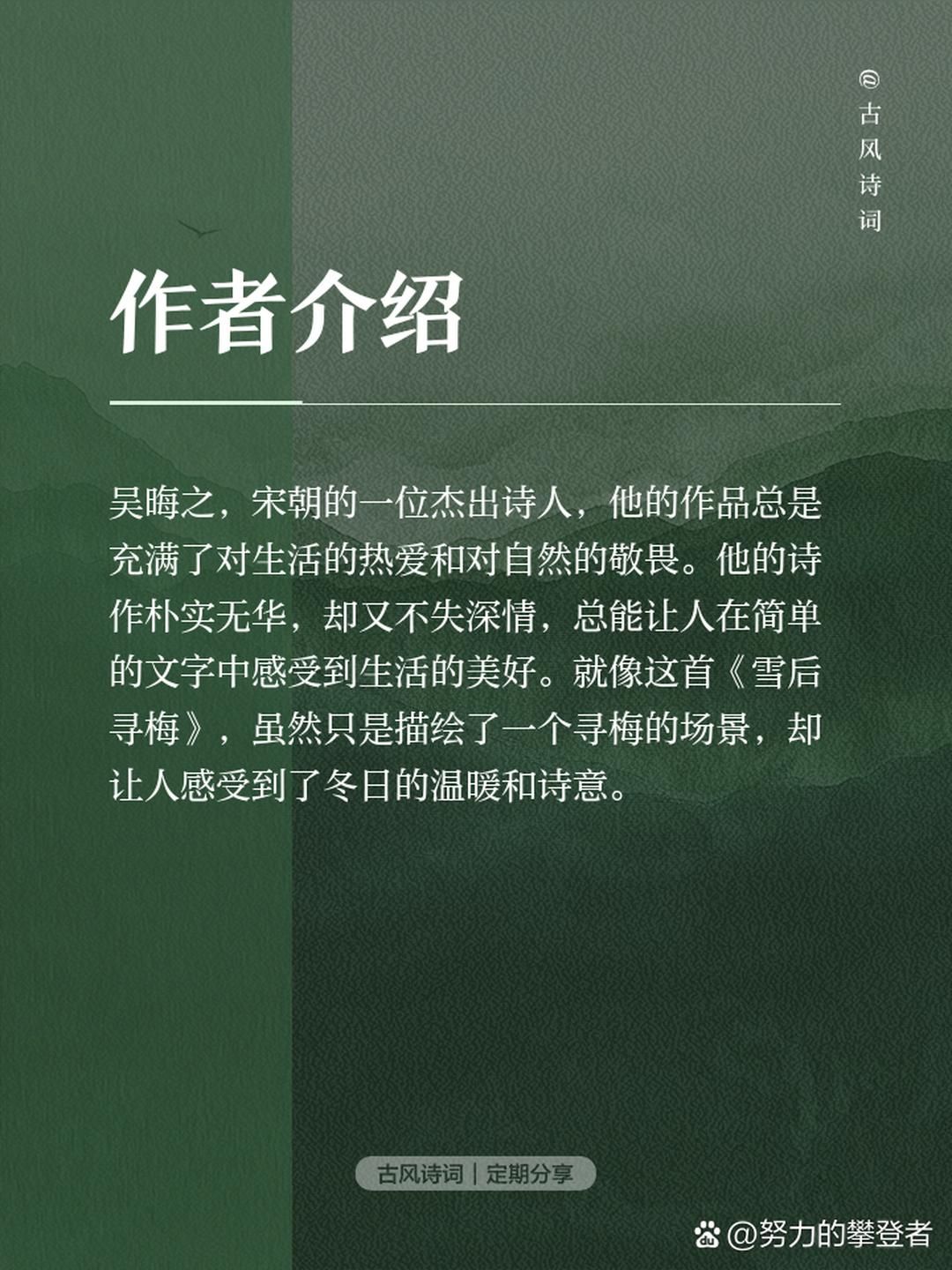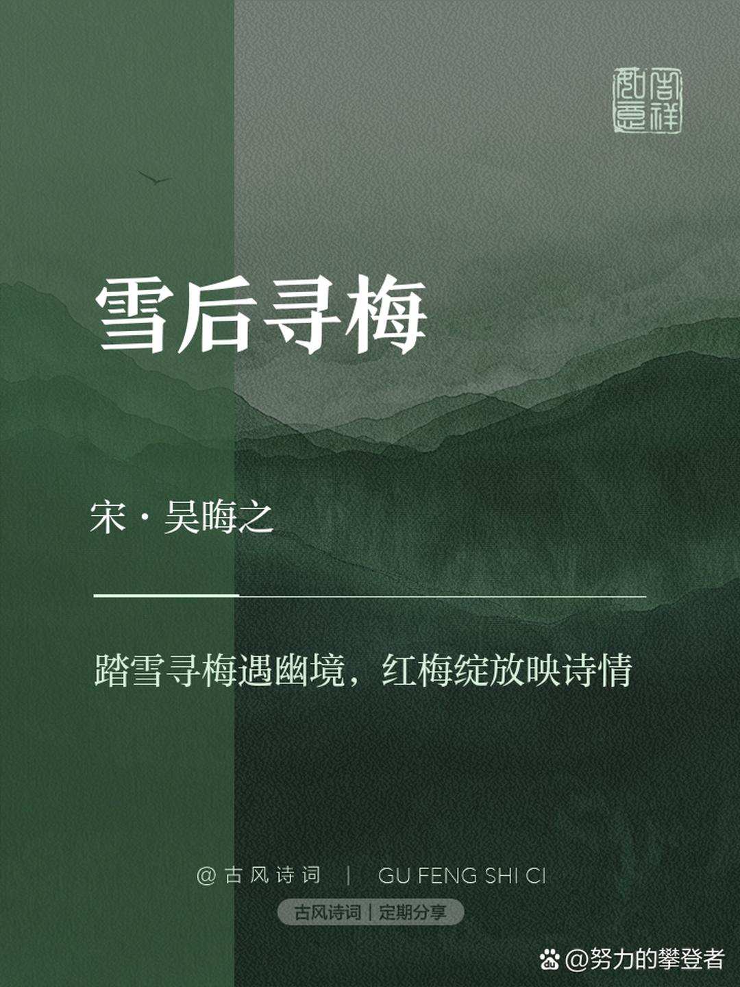 溪橋仍在,梅香如故。吳晦之的這次雪后尋訪,因其心靈的深度參與而超越了普通的閑情逸致。他在小徑與茅舍間,在白雪與紅梅的交替處,為我們定格了一個(gè)物我兩忘、心花同發(fā)的永恒瞬間。這首詩(shī)告訴我們,最高潔的志業(yè),或許就是守護(hù)內(nèi)心的約定,在適當(dāng)?shù)臅r(shí)節(jié),為自己的生命,也為懂得的知音,欣然綻放。