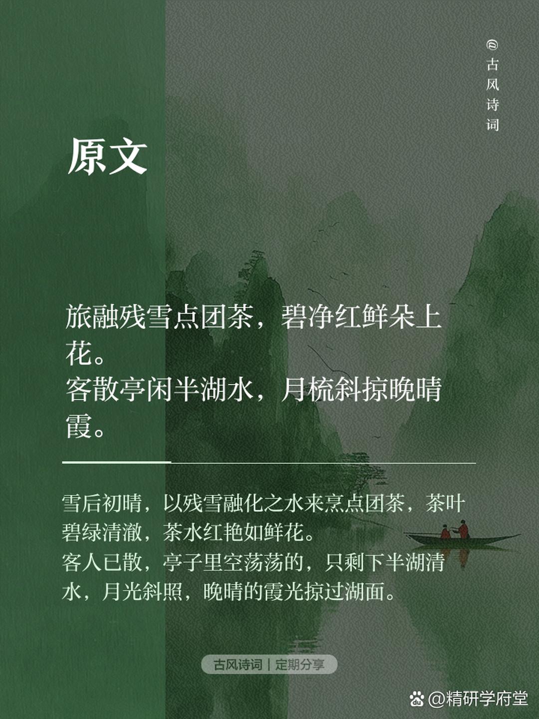 詩中描繪的“煮雪烹茶”、“拈韻賦詩”、“憑欄觀畫”,無一不是宋代文人生活美學的標準動作。葛紹體以清麗的語言,將這種生活儀式化、詩意化,使之成為一種可傳承的文化典范。它告訴后人,即便外界風雨如晦,內心仍可守護一片“煙雨館”般的清明世界,在與友、與物、與景的深情互動中,獲得生命的豐盈與寧靜。