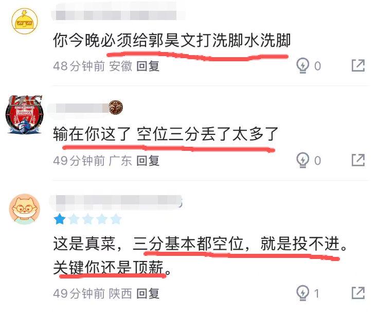 在新賽季揭幕戰,同曦加時以102-107惜敗廣東的比賽中,祝銘震雖然拿到板凳席上最高的14分,但16次出手僅命中5球,三分球10中2,但凡他能夠多進2個空位三分,郭昊文都不至于孤掌難鳴,空砍生涯新高的42分外帶6籃板8助攻。有球迷嘲諷祝銘震:你的三分比戴了還安心。