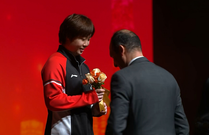 接著給女乒隊員頒獎。