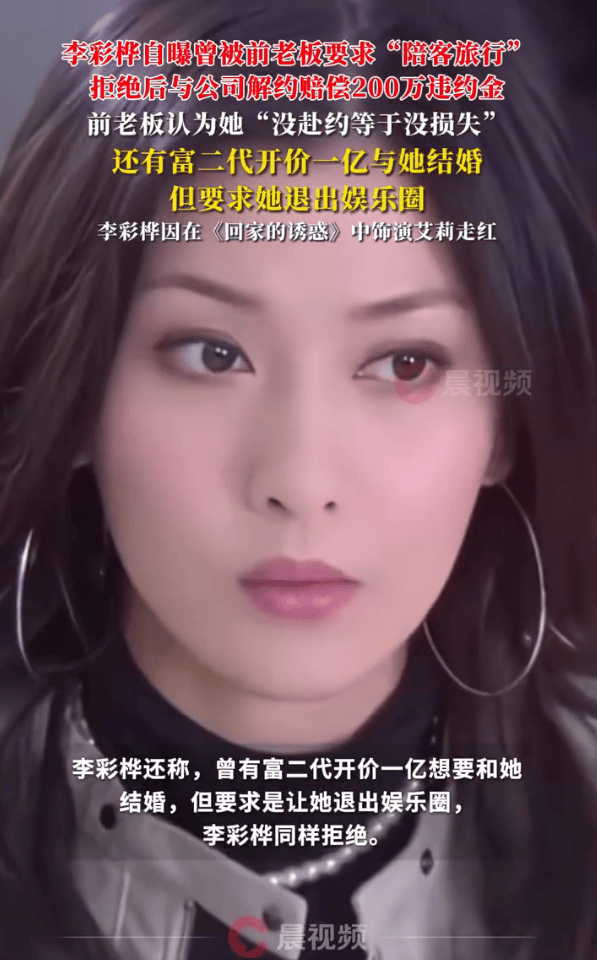 李彩樺還稱,曾有富二代開價一億想要和她結婚,但要求是讓她退出娛樂圈,李彩樺同樣拒絕。