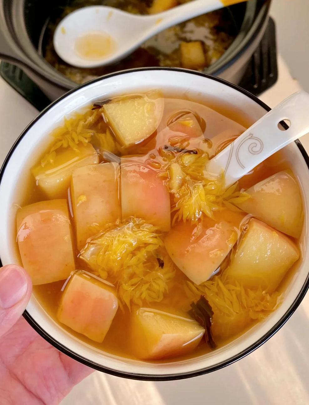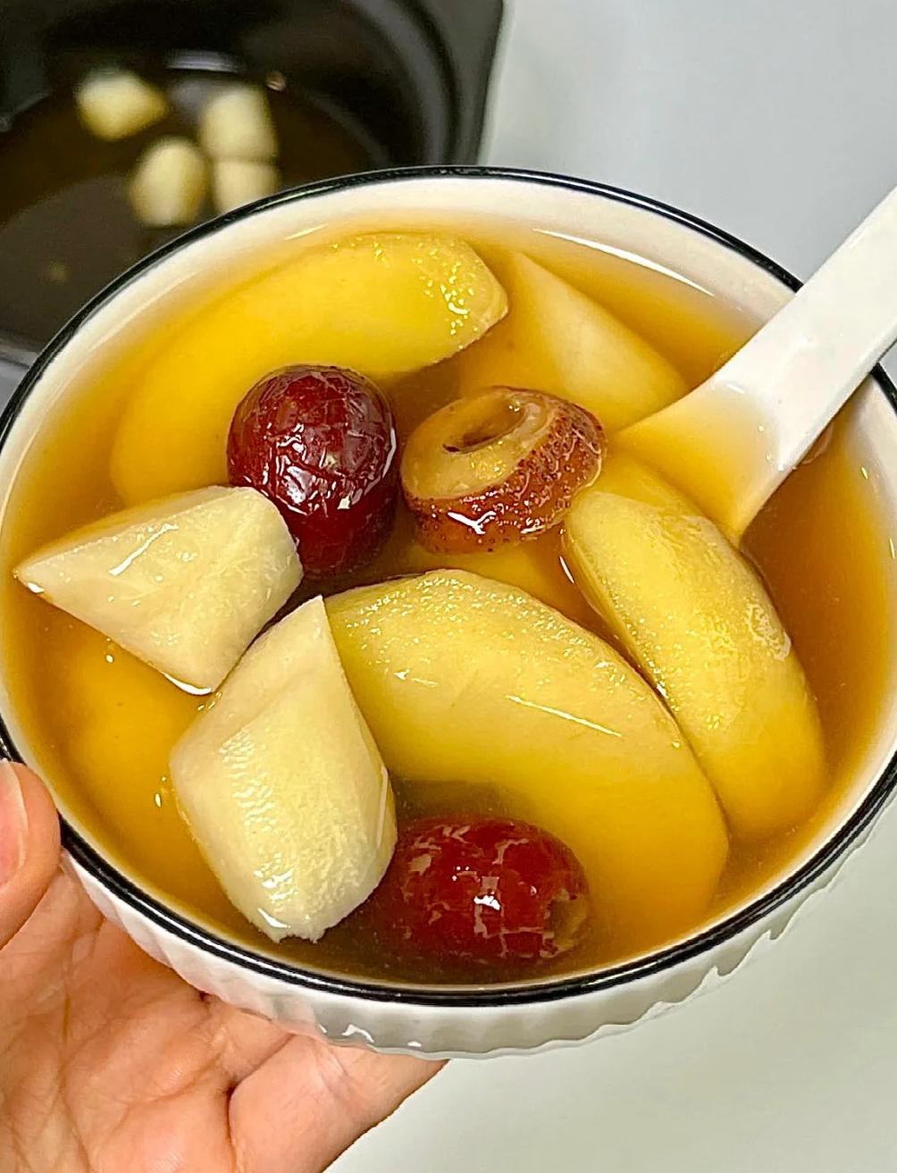 這碗湯,清澈中帶著膠質(zhì)的潤(rùn)澤。喝一口,銀耳的滑,梨子的清甜,紅棗的香,全在嘴里化開(kāi)。從喉嚨到胃里,都感覺(jué)被溫柔地滋潤(rùn)了。