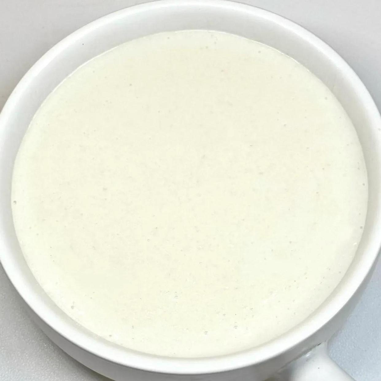 2、加入牛奶,攪拌成無顆粒的稀面糊,靜置10分鐘,讓食材充分融合。