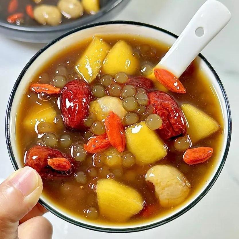 桂圓能補益心脾、養血安神,搭配蘋果和紅棗煮成羹,清甜潤口、營養均衡,既能助眠,又能滋養肌膚,睡前喝一碗,睡得香氣色也好。