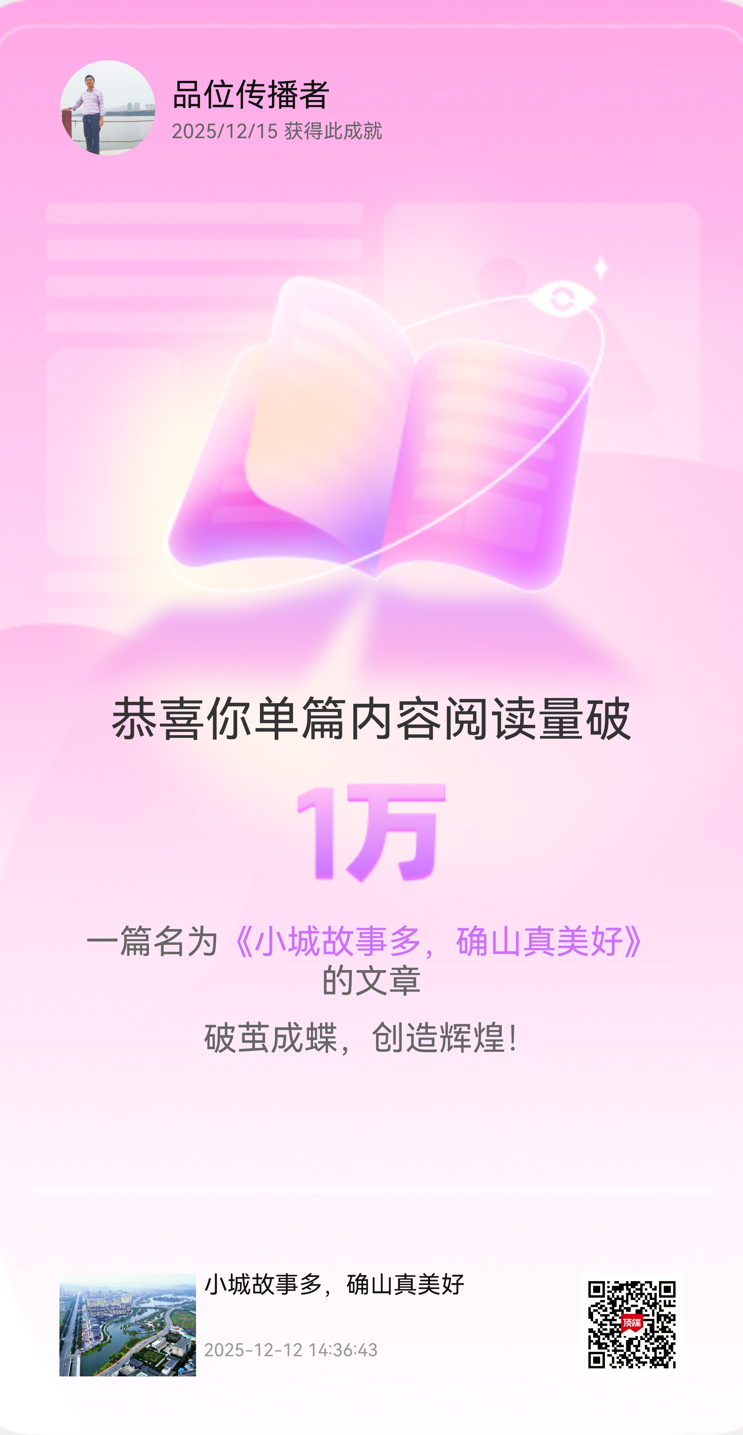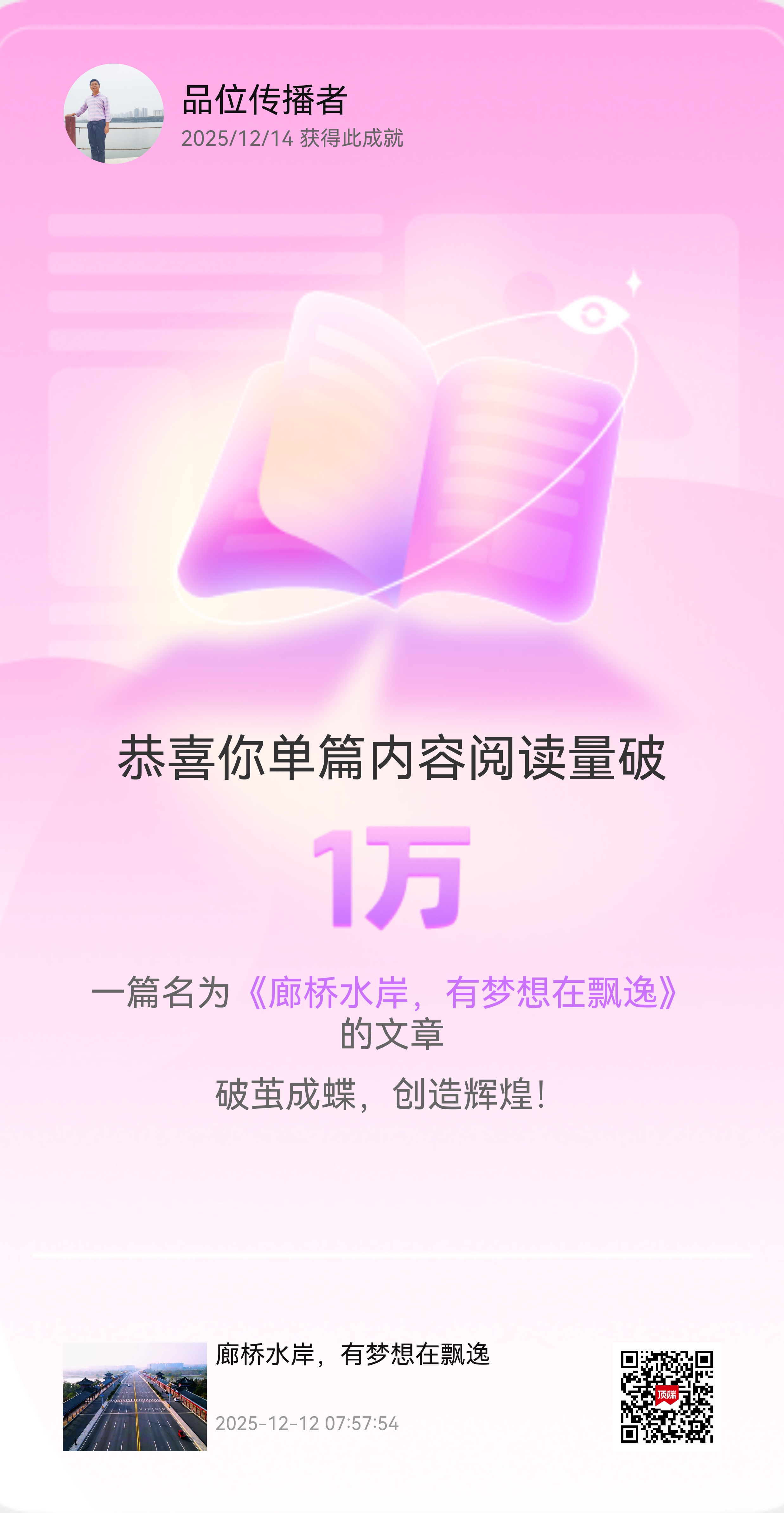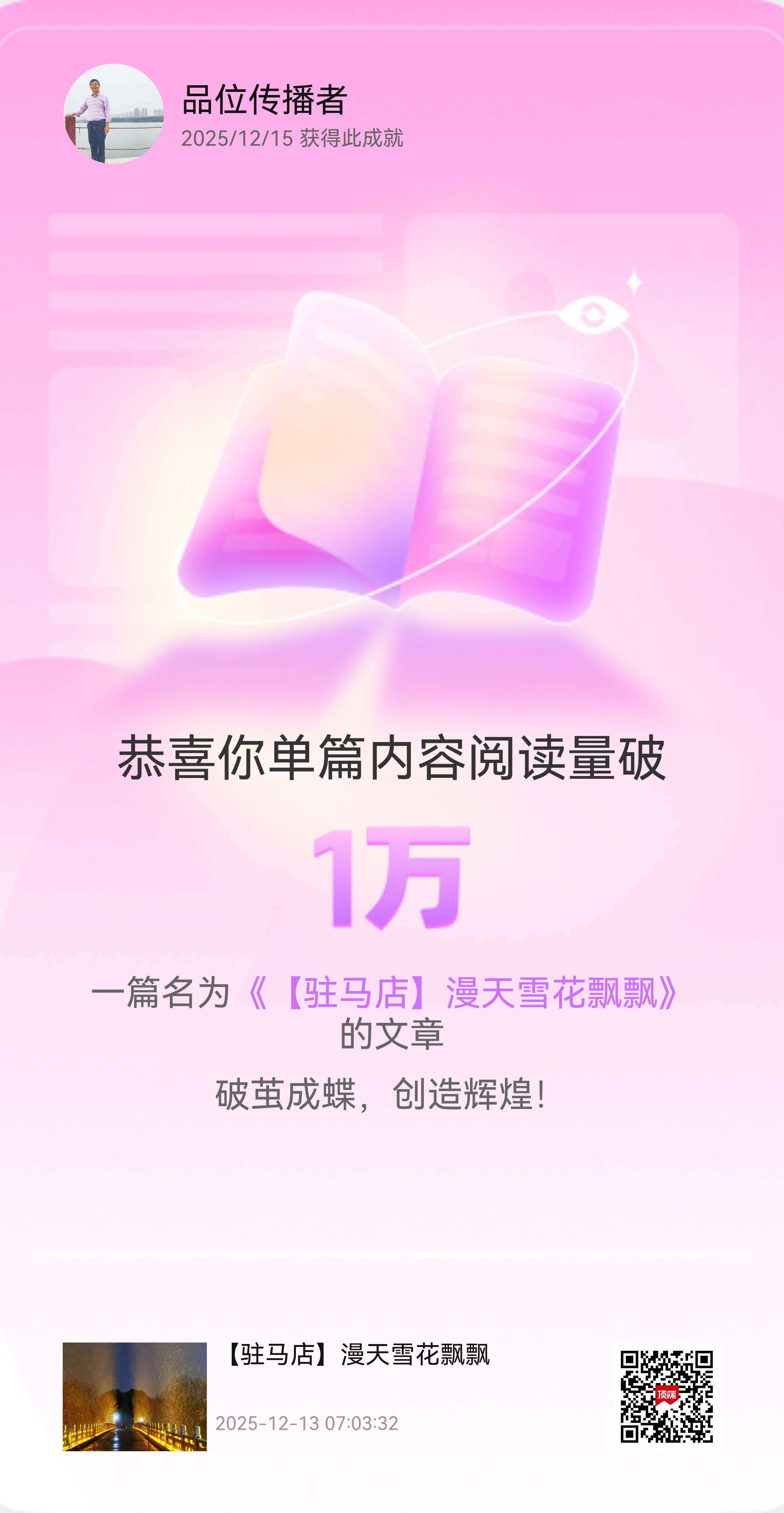 近期本人在河南日報頂端新聞發文閱讀量又破萬啦!