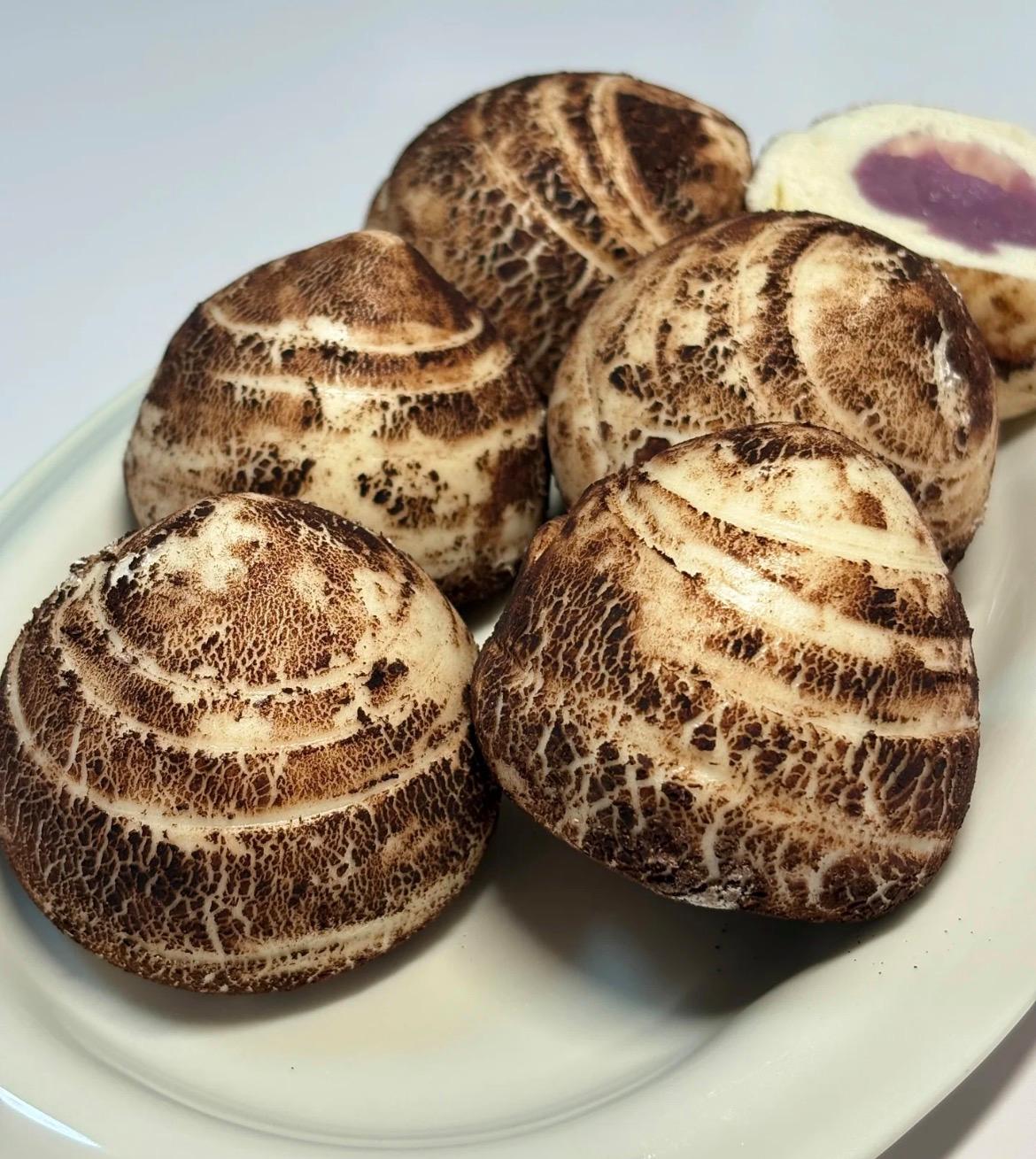 中筋面粉 300克、溫水 160克、酵母 3克、白糖 10克、芋泥餡 適量、糙米粉 適量、可可粉 適量