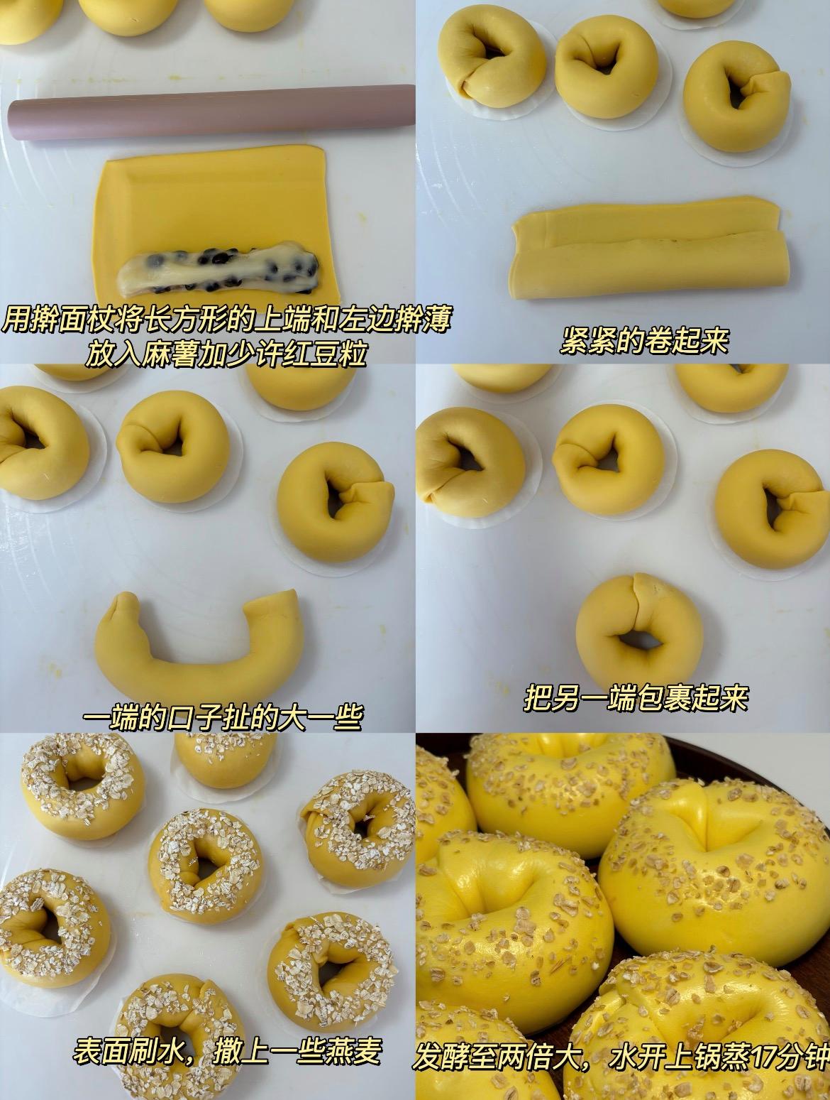 牛奶100克、白砂糖20克、玉米淀粉20克、糯米粉60克、黃油15克、紅豆粒適量、老南瓜200克、面粉約300克、酵母3克、白砂糖15克、奶粉15克、即食燕麥片少許