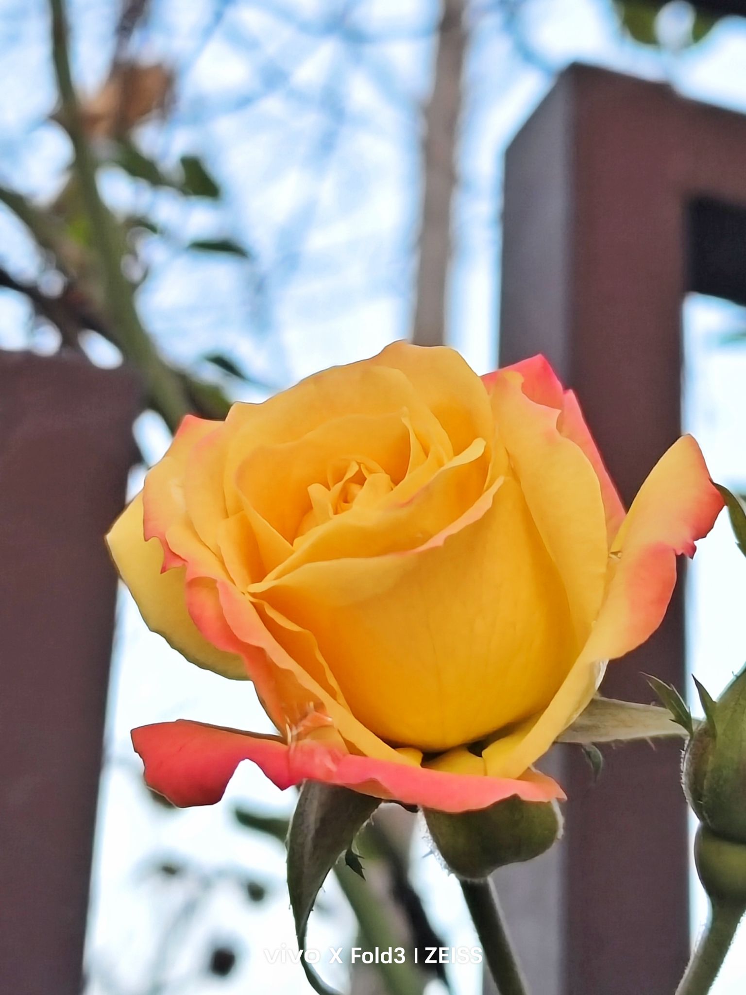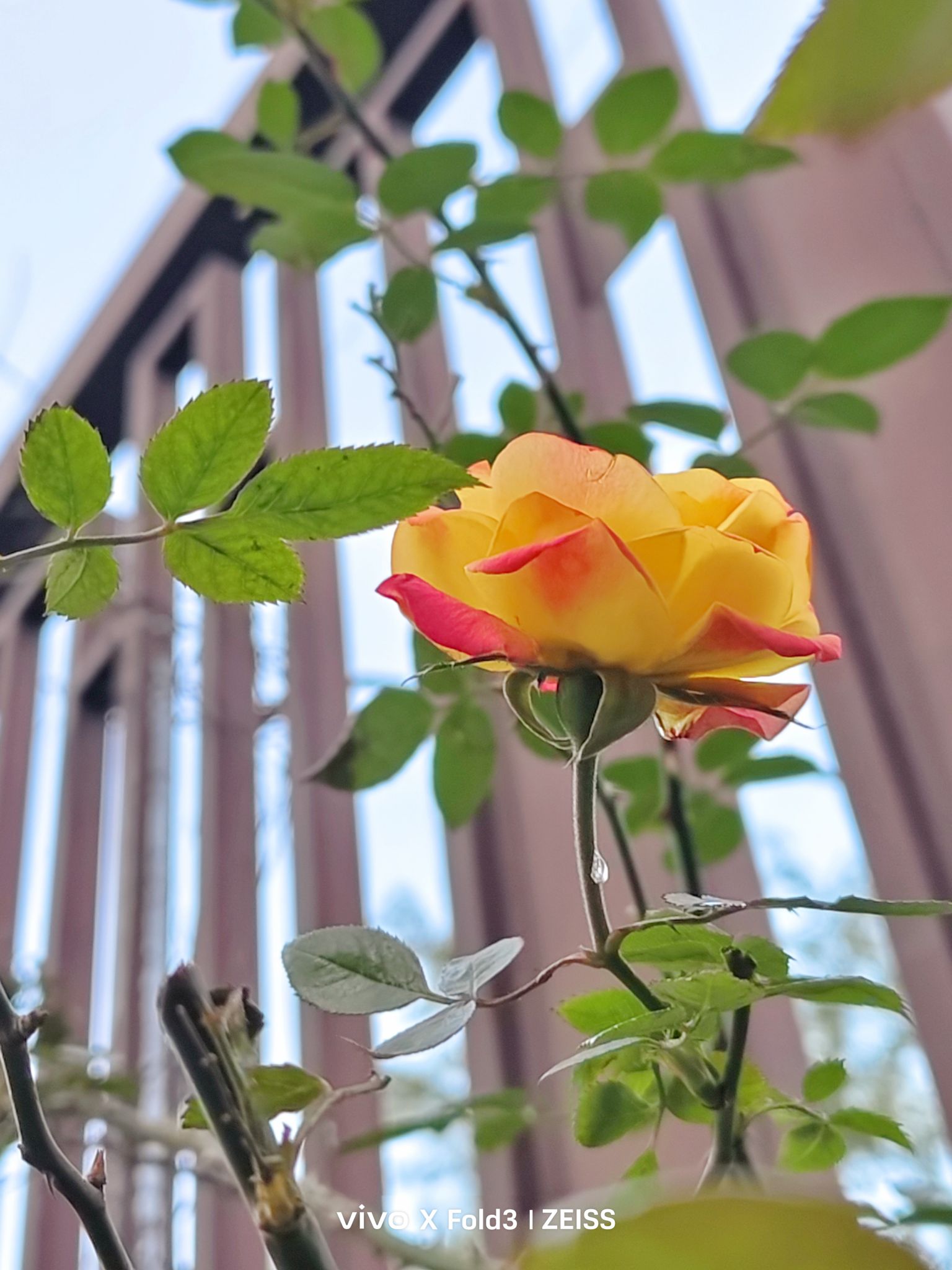 這株薔薇扎根在露臺的欄桿旁,從春到秋,它默默生長,如今直面寒冬,更顯風骨。所謂“傲骨立冬時”,大抵就是這般模樣——不向嚴寒低頭,不隨季節凋零,在最清冷的時節,守著屬于自己的生機。看著它,忽然懂得,真正的堅韌從不是避過風雨,而是在逆境里依舊保持綻放的勇氣。