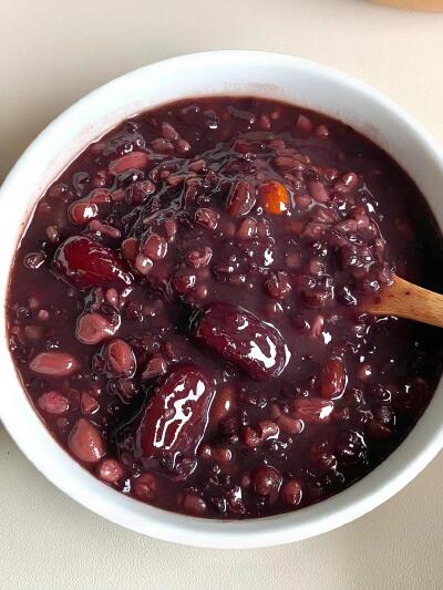 3、蓋上鍋蓋慢燉1小時,至黑豆軟爛、湯汁濃稠,撒上少許鹽調味。