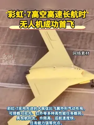 近日,彩虹-7高空高速長航時無人機在西北某機場成功首飛。這也是國產大飛翼無人機起降畫面首次公開。