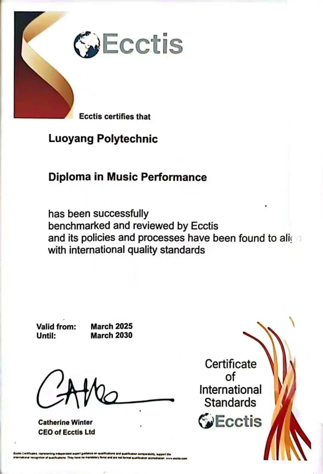 洛陽職業技術學院音樂表演專業獲UK ENIC國際認證