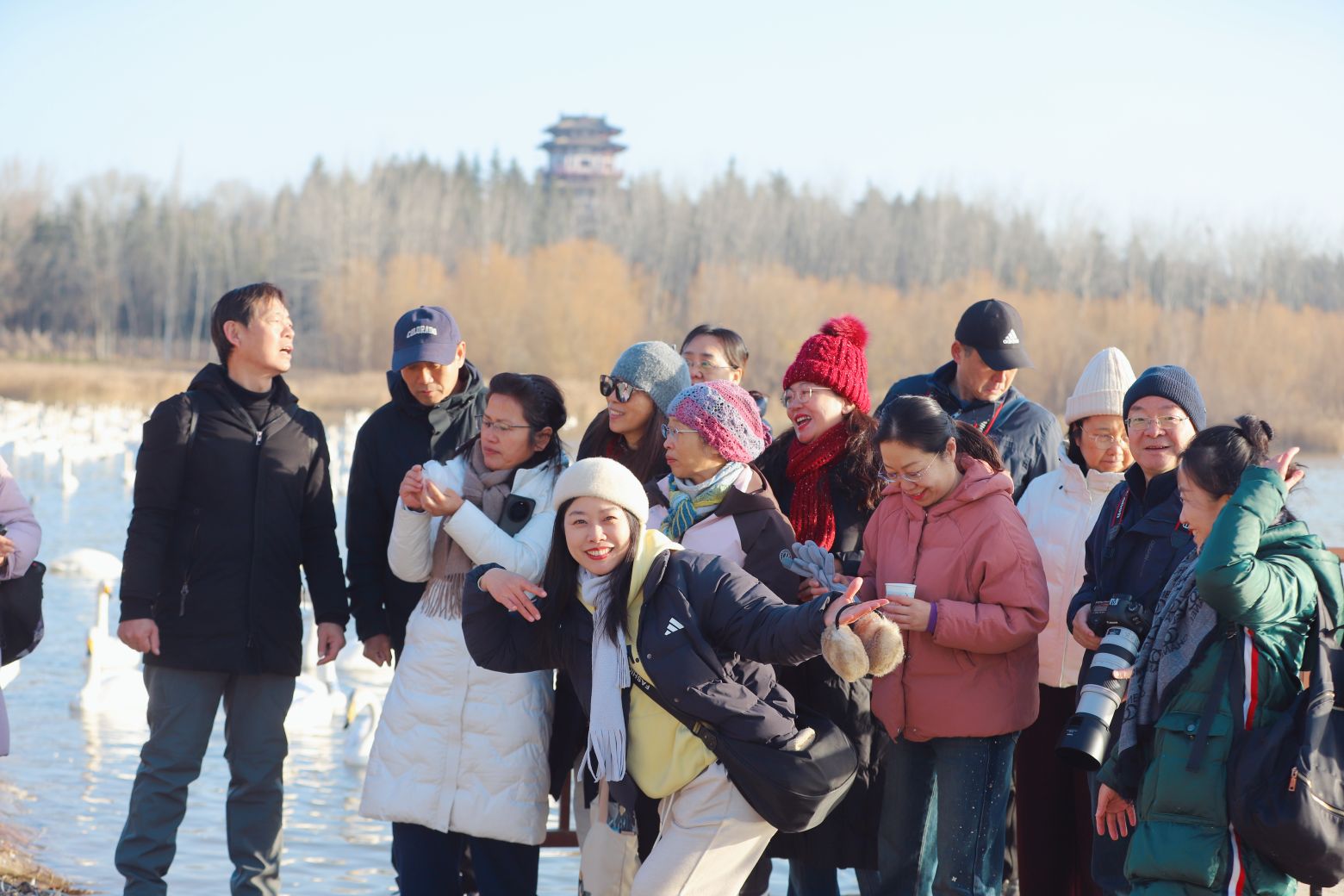除了天鵝,公園的景致也讓人沉醉。蜿蜒的木棧道沿著湖岸延伸,一側(cè)是蘆葦搖曳、水草豐美,一側(cè)是黃河奔騰、遠(yuǎn)山如黛,隨手一拍都是無需濾鏡的大片。漫步其間,既能感受自然的靜謐,又能體會(huì)人與自然和諧共生的溫暖——岸邊有耐心投喂的游客,有舉著相機(jī)記錄瞬間的攝影愛好者,還有帶著孩子認(rèn)識(shí)天鵝的家長(zhǎng),每個(gè)人的臉上都洋溢著笑意。
