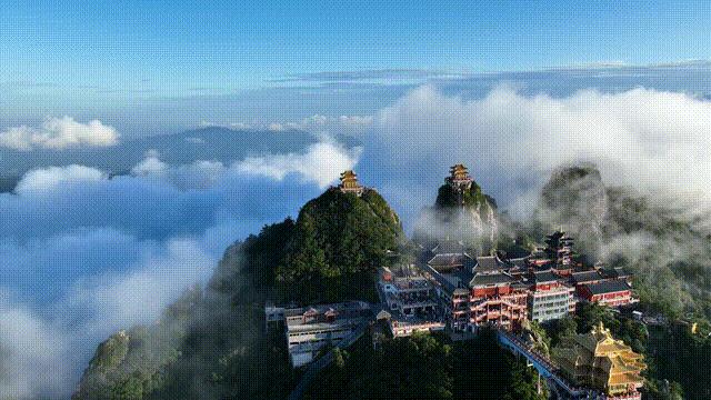 風(fēng)起時(shí),云海翻涌,卷著松濤的聲音,卷著道觀的鐘聲,卷著游人的驚嘆,在山間游走。此刻才懂,夏日的熱烈從不是喧囂的代名詞,也可以是這般沉靜的鋪展。