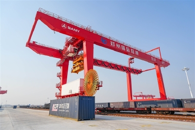 來到位于鄭州航空港東南部的鄭州國際陸港核心功能區(qū)——中歐班列(鄭州)集結中心,只見大型龍門吊在繁忙作業(yè),一個個裝滿貨物的集裝箱被輕松“拿捏”。