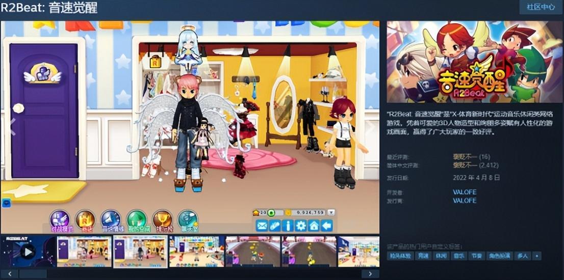 時間來到2022年,《R2Beat: 音速覺醒》,一款由VALOFE制作并發行的音樂競速游戲悄無聲息地免費登錄了steam平臺,很快就在玩家們口耳相傳中聲名鵲起:這畫風,這玩法,這系統,這操作,這UI,這字體……這不就是當年《QQ音速》的完美復刻嘛,呃或者更確切地說,是當年那款《R2Beat》又回來了。