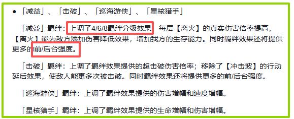 第三個,加強了追擊角色和狼狩羈絆,托帕終于被重視了,但是飛霄依然是單挑角色,在這個貨幣戰爭永遠是路邊一條,加強和不加強沒有區別。