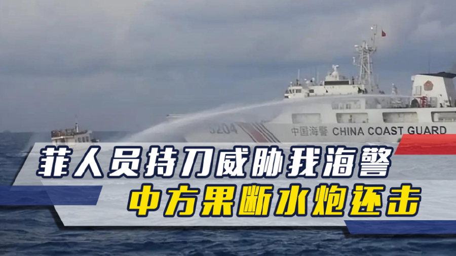 菲人員持刀威脅我海警,中方果斷水炮還擊,美反誣中國(guó)做錯(cuò)兩件事