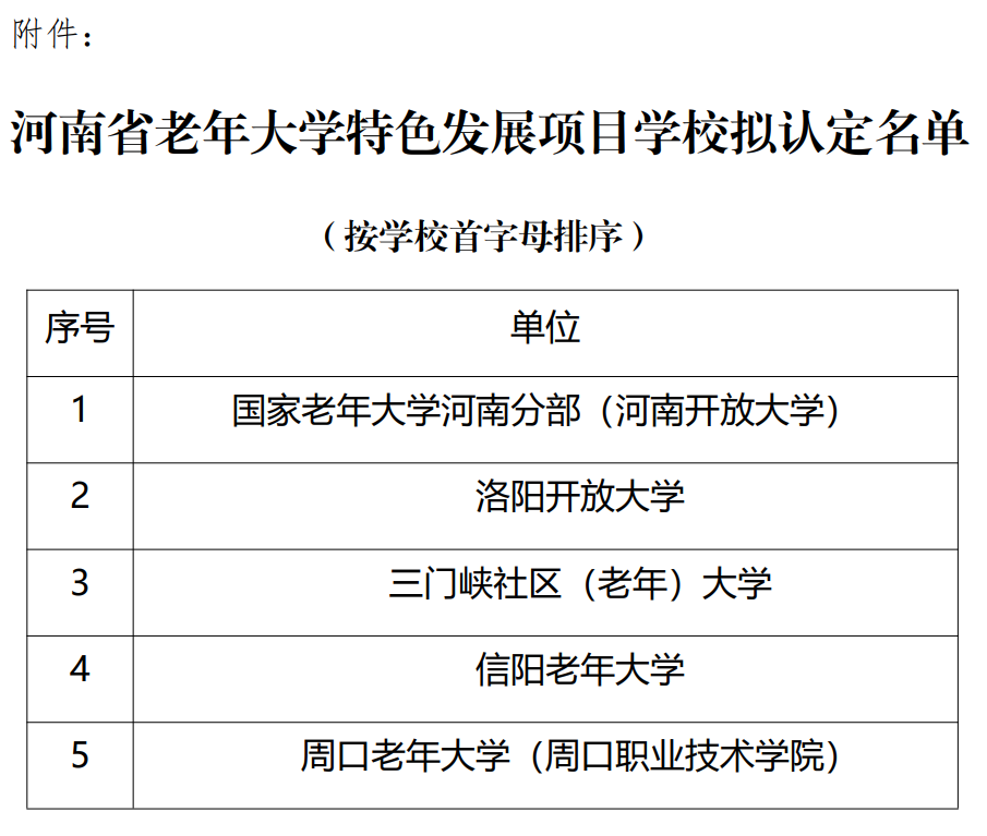 ■按照《河南省教育廳辦公室關于開展河南省老年大學特色發展項目學校申報工作的通知》(教辦職成〔2025〕261號)要求,經學校申報、初審推薦、專家會評、實地考察等環節,擬認定河南省老年大學特色發展項目學校5所,現將結果予以公示。
