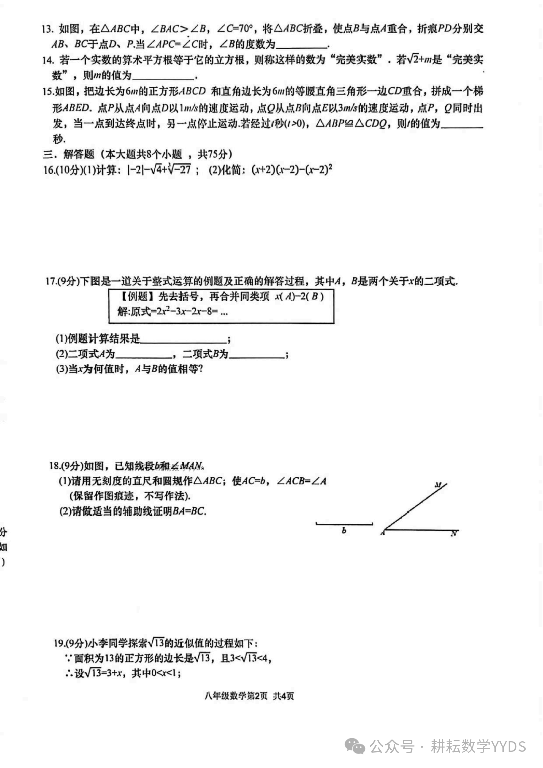 北師大版25-26學年八年級上學期數學第三次月考培優卷