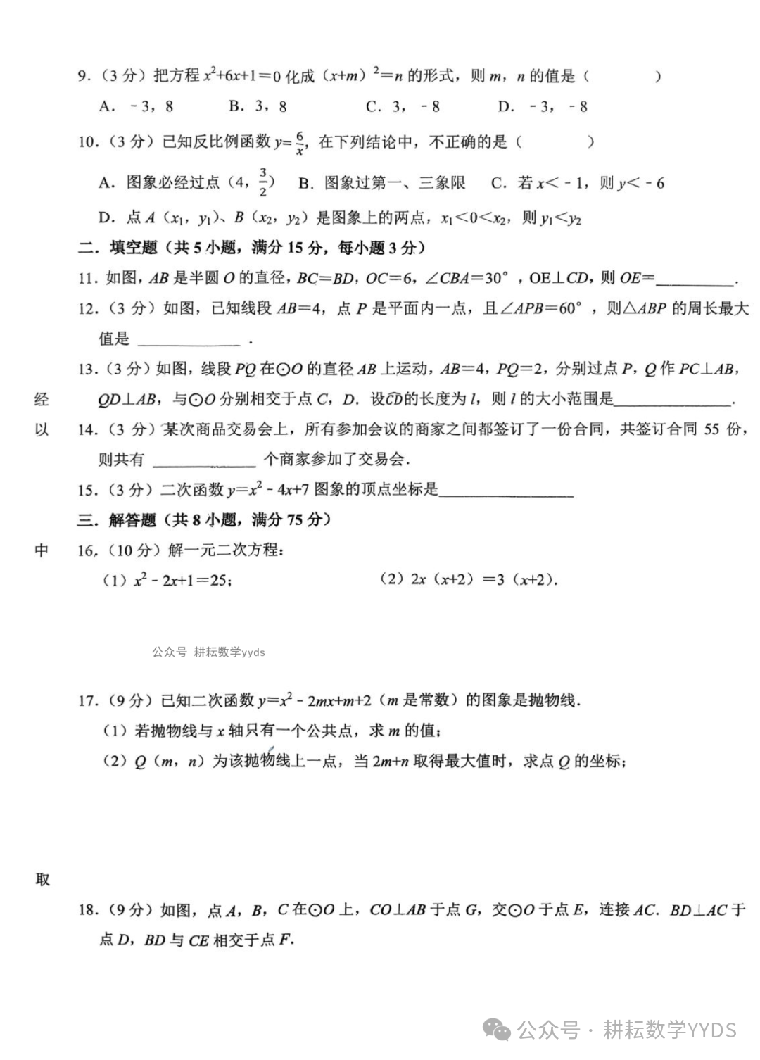 信陽市浉河中學2025-2026學年九年級上學期數學周測卷
