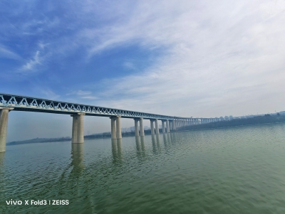 夕陽(yáng)下的黃河高鐵兩用大橋!