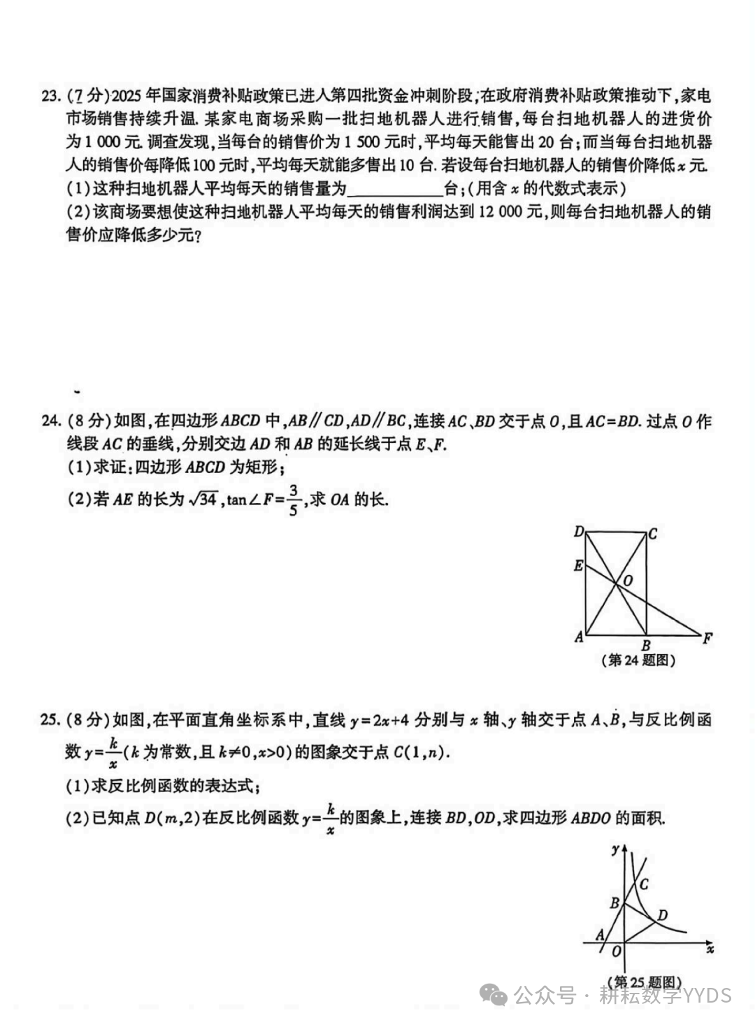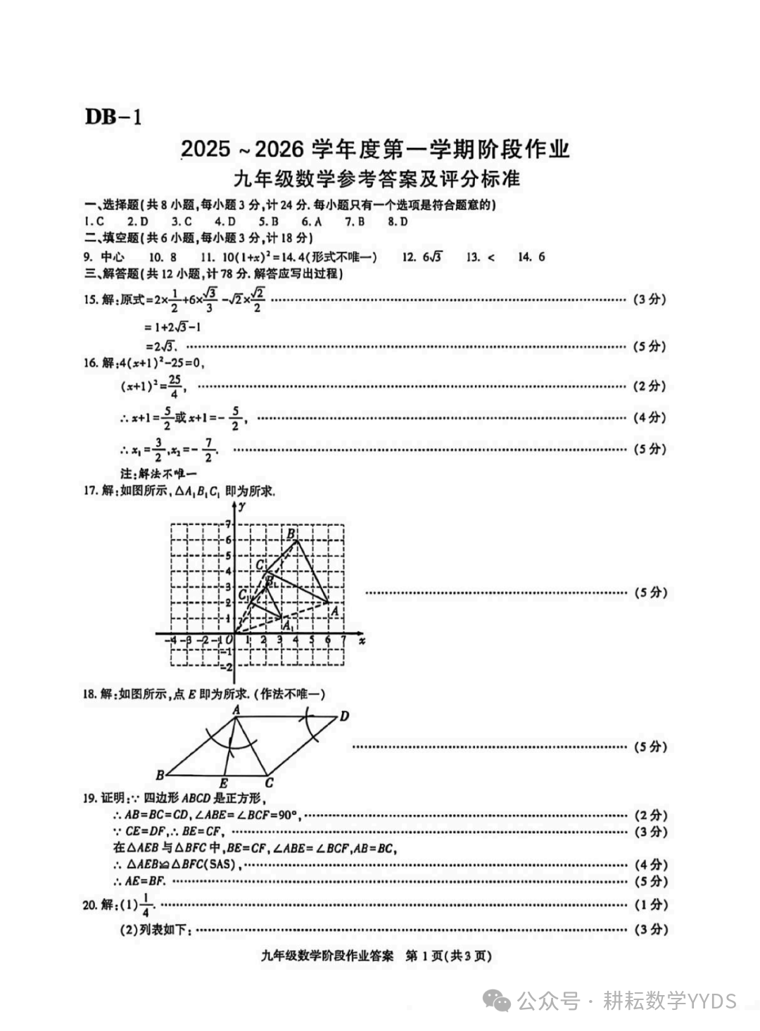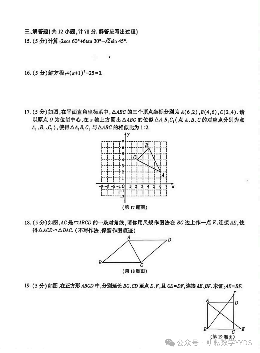 清豐縣實驗初級中學 上學期九年級第二次月考數學試卷(PDF版,含答案)