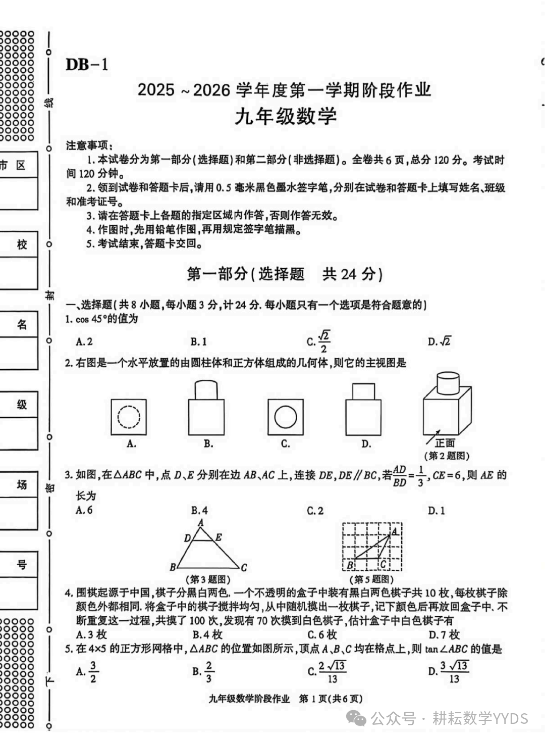 臺前縣勵志中學2025-2026上學期九年級12月月考數學試題含答案