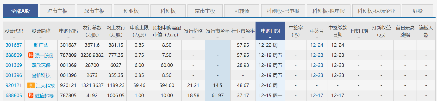 本周(12月15日-12月19日),共有5只新股將進行申購,其中深主板2只,為譽帆科技等;科創板2只,為健信超導、強一股份;北交所1只,為江天科技。