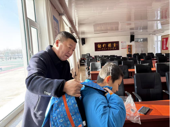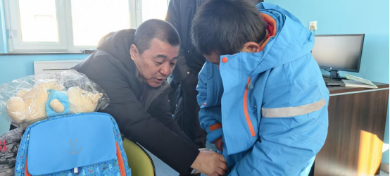 志愿者們踏著陽光抵達前郭爾羅斯蒙古族自治縣達里巴鄉中心小學時,孩子們面對志愿者的到來,臉上綻放出期待的笑容。溫暖包被逐一發放到孩子們手中,孩子們迫不及待地打開包裹,看到嶄新的沖鋒衣、書包和文具時,眼中閃爍著興奮的光芒。在志愿者的幫助下,孩子們很快換上了新冬裝,互相展示著自己的新衣服,房間里里頓時充滿了歡聲笑語。孩子輕輕撫摸著衣服,反復看著手中上可愛的玩偶,每一個細微的動作都透露著內心的喜悅。