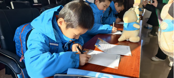 當志愿者們打開溫暖包時,孩子們立刻被里面的物品所吸引。彩色畫筆、精美筆記本、趣味飛行棋,每一樣禮物都讓孩子們愛不釋手。他們興奮地圍坐在一起,迫不及待地嘗試新文具——有的用彩筆描繪心中的夢想,有的專注研究飛行棋的規則,還有的熱烈交流著收到的禮物。特別是嶄新的冬裝和書包,更讓孩子們歡欣不已。他們小心地試穿新衣,背上新書包,臉上洋溢著幸福的笑容。在這個寒冷的冬日,這些溫暖的禮物仿佛為孩子們構筑了一個充滿關愛的溫馨世界。