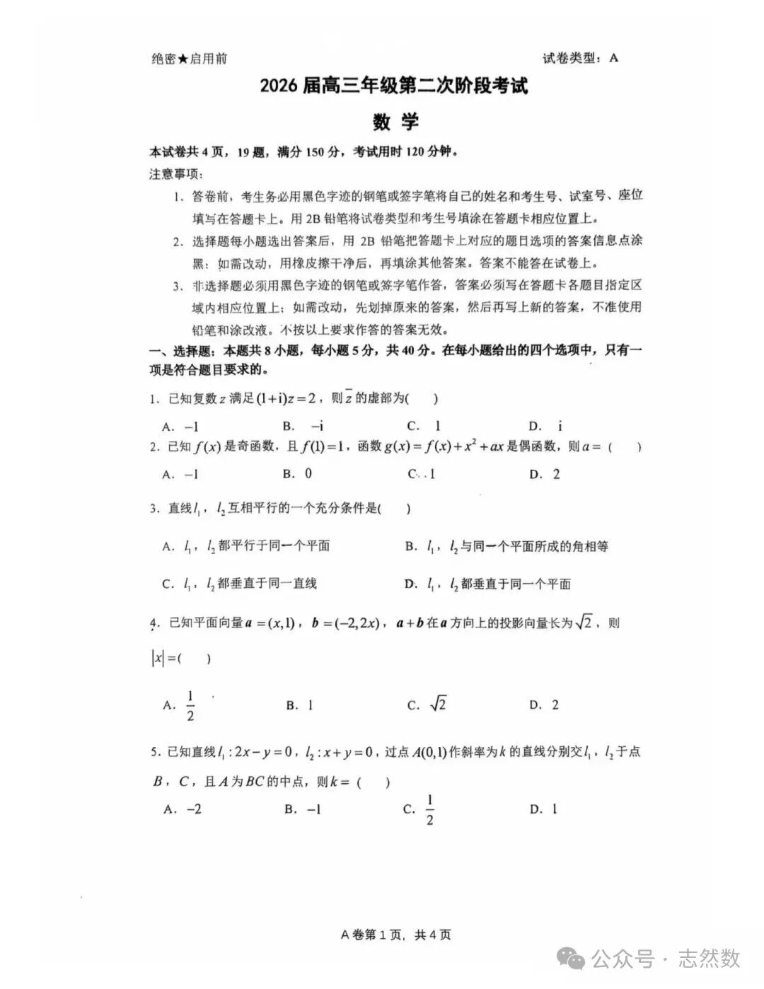 2026屆高三年級第二階段考試數學(深圳中學2025.12)