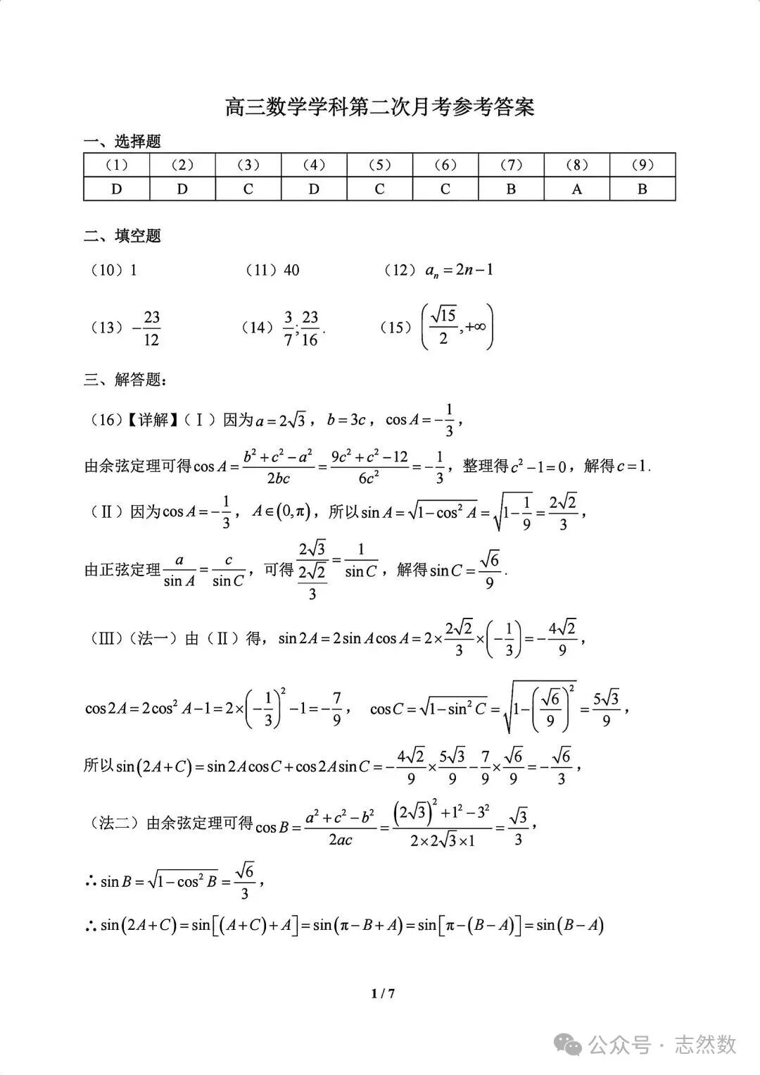 東莞市高三12月七校聯考數學試題