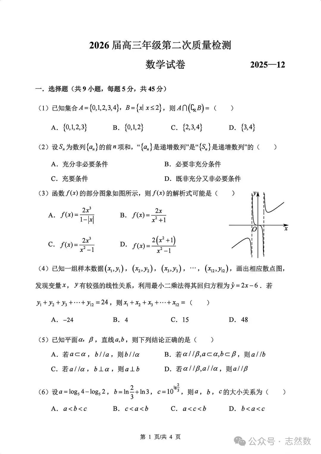 2025年山東名校考試聯盟、齊魯名校高三12月大聯考化學、物理、數學試題及答案