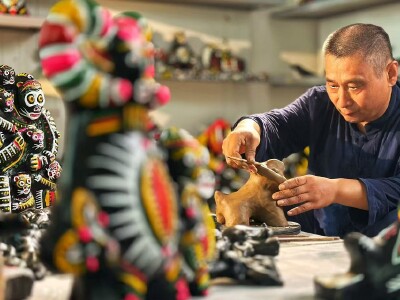 塑形是民間美術的延續。面團在他手中化作人面猴、雙頭狗、九頭鳥——這些造型與泥泥狗一一對應,卻更圓潤可親。彩繪不用化學顏料:茜草根煮汁得朱紅,蓼藍葉發酵得靛青,黃土本色為赭,麥粉本色為白,黑則用陵前古柏的炭粉。他的妻子在旁細語:“畫紋如畫符,一筆一念,都是給吃饃人的祝福。”