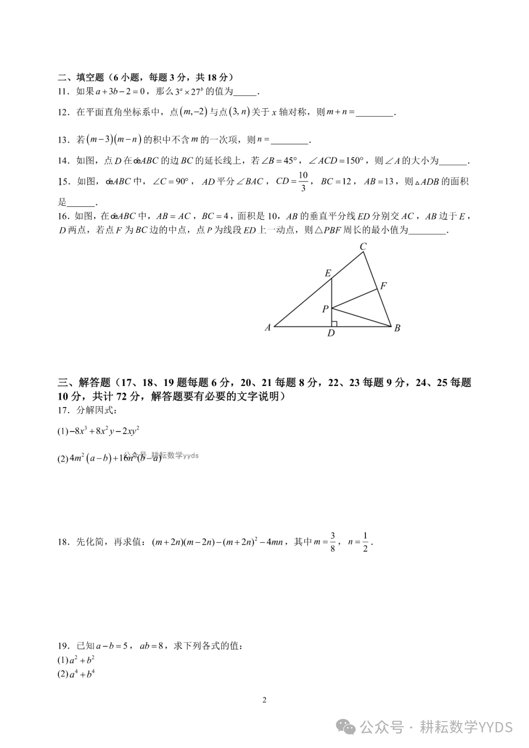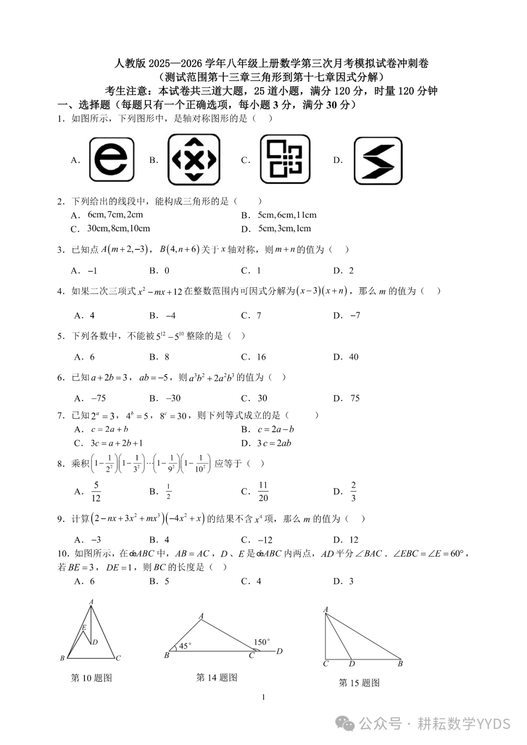 人教版25-26學年八年級上冊數學第三次月考沖刺卷