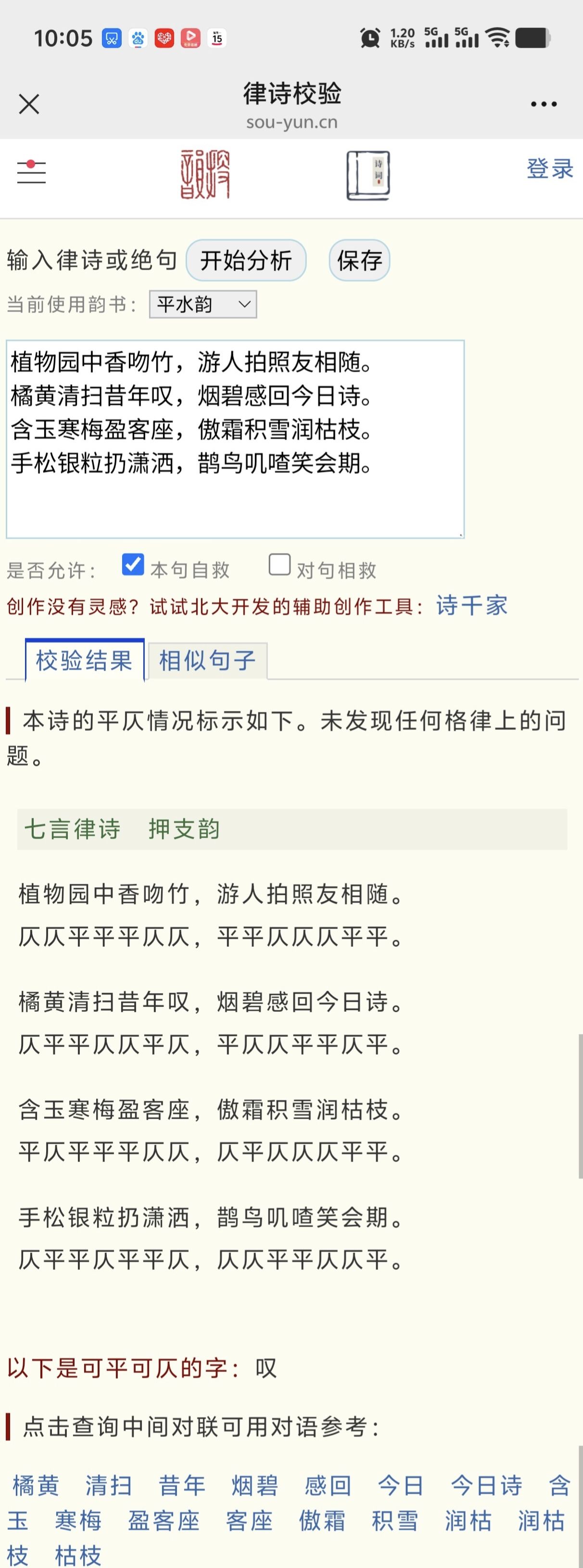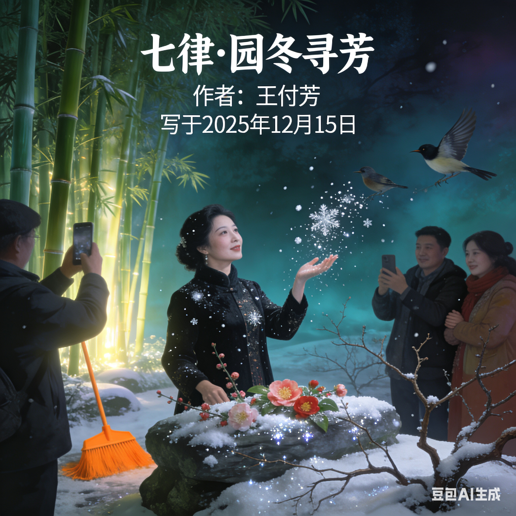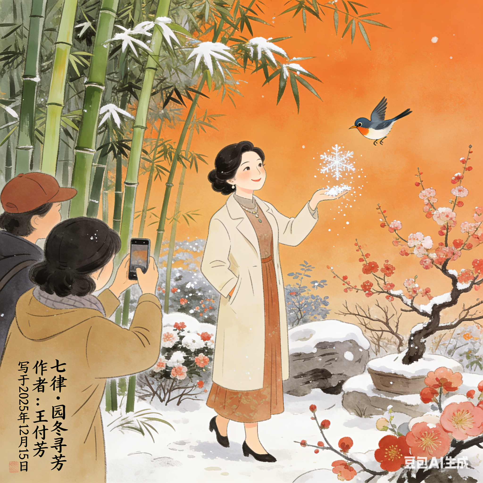 這首詩的核心亮點的在于形式技巧為意境服務,格律、對仗等創作手法與清雅溫情的意境高度統一——既遵循七律的格律規范,又通過技巧運用強化了場景的層次感、情感的溫潤度,讓“冬園尋芳”的意境更顯飽滿厚重。