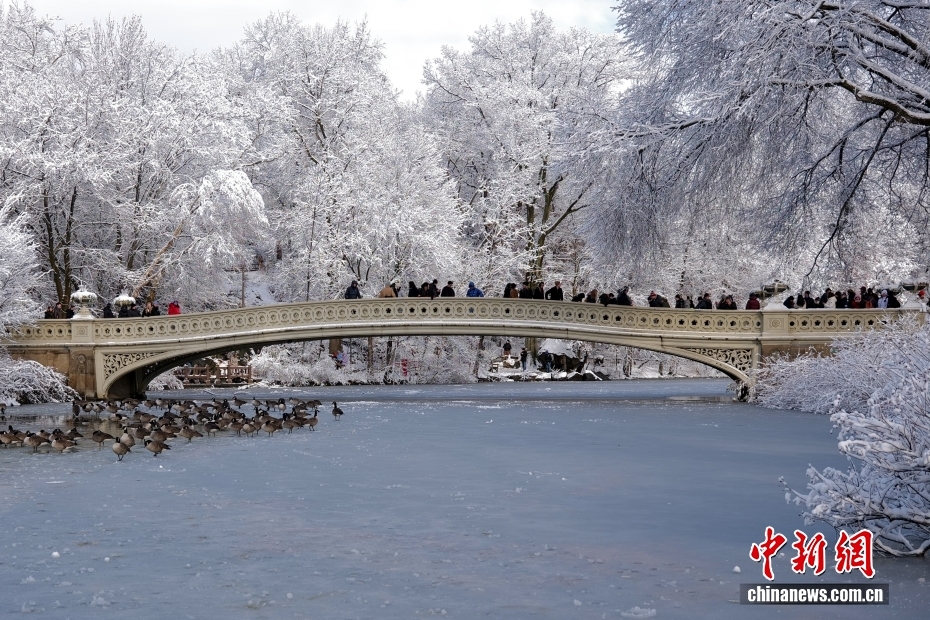 當(dāng)?shù)貢r(shí)間12月14日,美國紐約迎來今冬首場(chǎng)大雪,民眾走進(jìn)中央公園欣賞雪后美景,享受冬日樂趣。