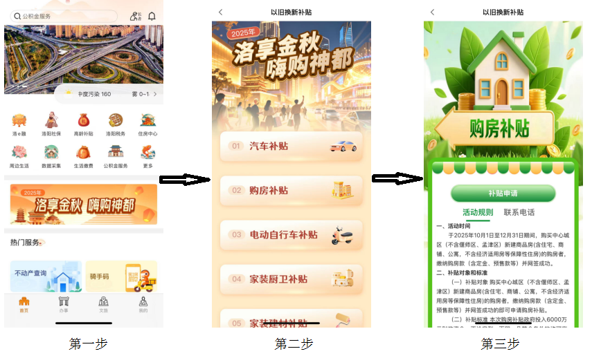 2025年10月1日至12月31日,購買中心城區(qū)(不含偃師區(qū)、孟津區(qū))新建商品房(含住宅、商業(yè)、公寓等,不含經(jīng)濟(jì)適用房等保障性住房)的購房人,繳納購房款(含定金、預(yù)售款等)并網(wǎng)簽成功的即可申請購房補(bǔ)貼。