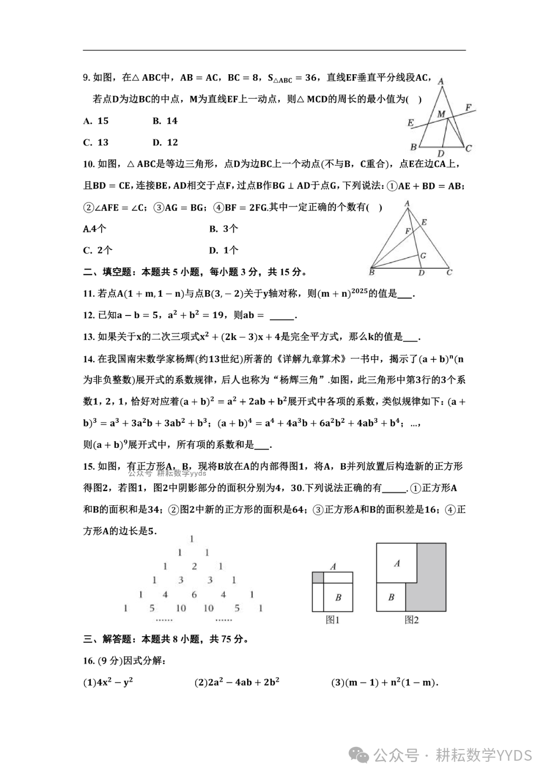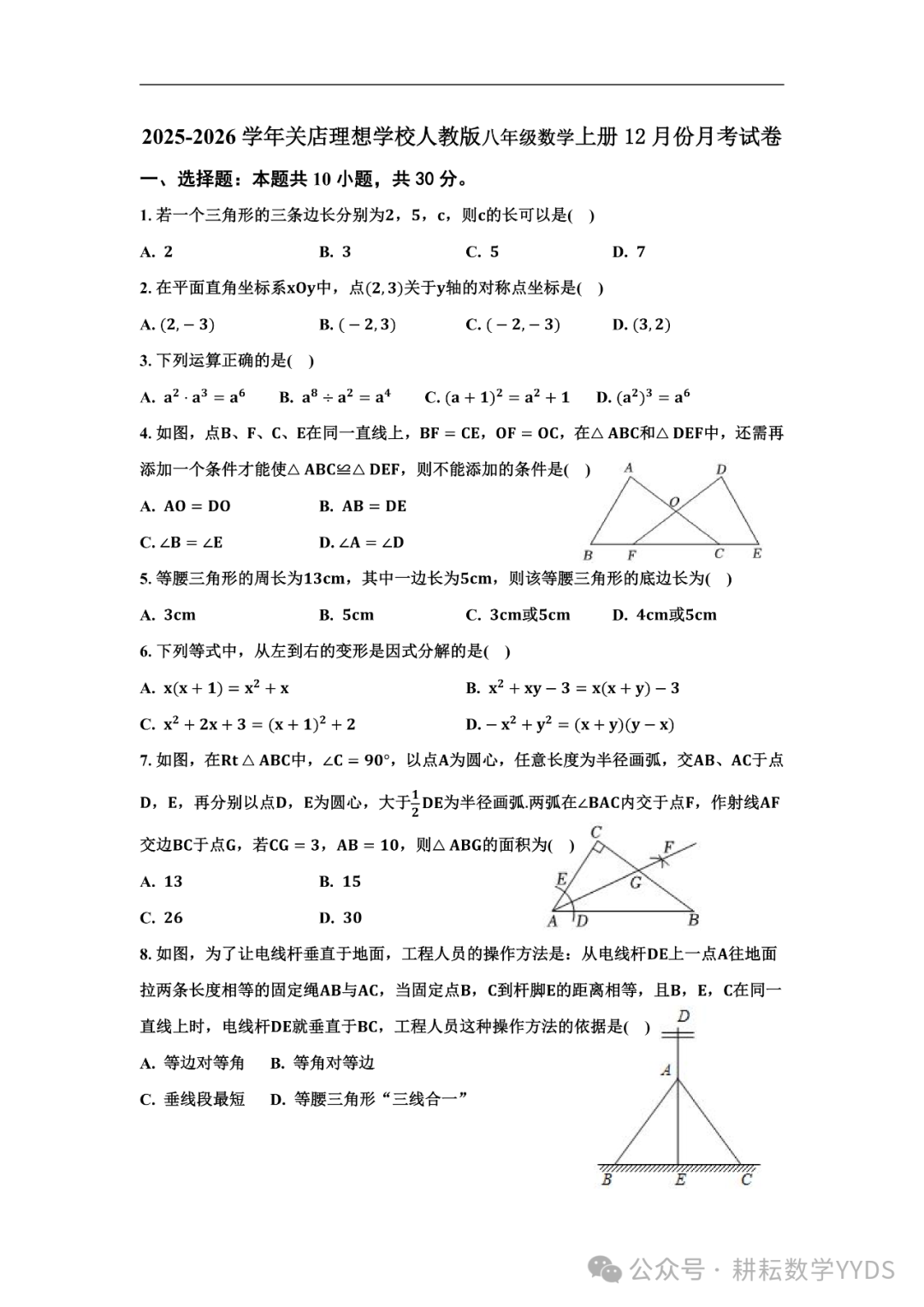 人教版25-26學年八年級上冊數學第三次月考提分卷