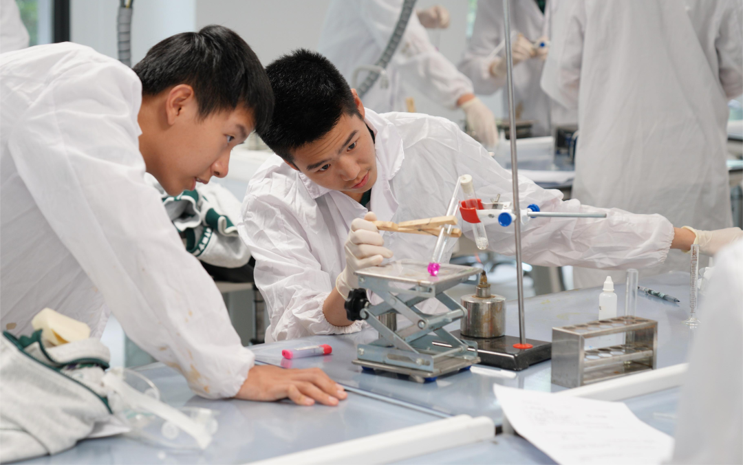 在夯實科學知識基礎上,學校鼓勵學生積極、廣泛參與科學探究活動,經歷、積累科學探索與問題解決的過程與體驗,引導學生像科學家一樣思考。為此,學校構建了“初中-高中-大學”貫通式科學探究課程群。例如,初高銜接“科學盒子”課程、高中理科探究課程、雙高銜接“高校研學”課程等,突破學段分離,做好進階設計,促進科學方法的系統建構與科學思維的持續生長。
