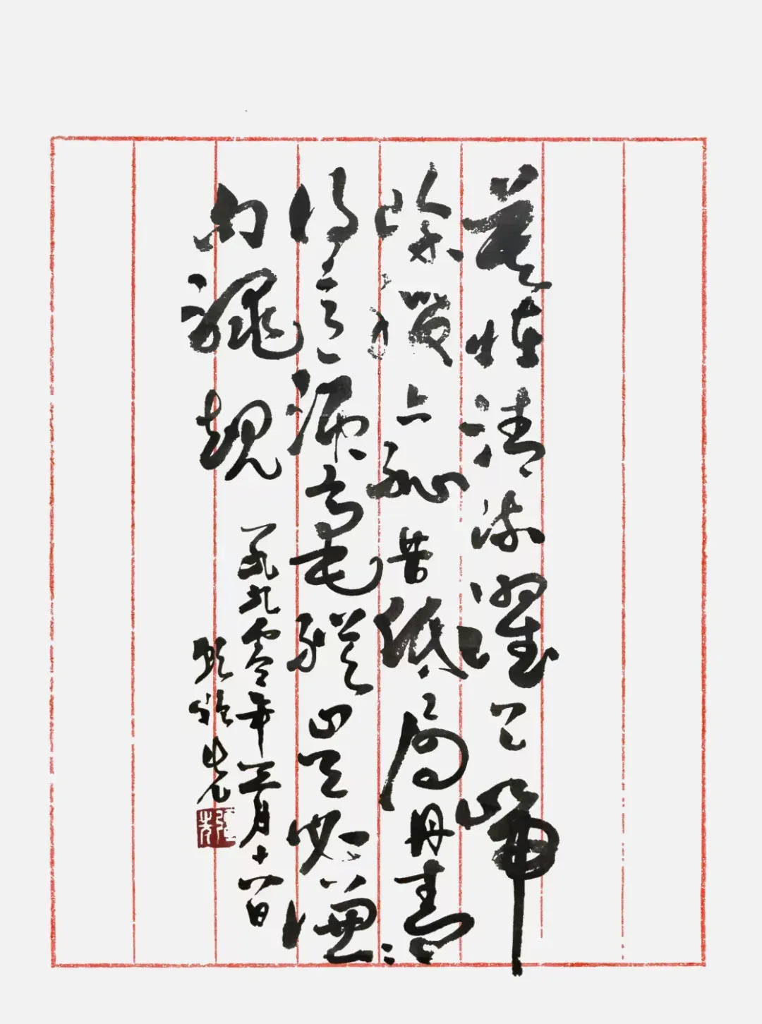 從《世人》的「頑癡」守藝到《莫怪》的「毫縱」寫心,顧強先的詩心與筆墨在絕筆之作中完成了圓融的對話。這幅作品沒有華麗的技法鋪陳,卻以最真摯的筆墨,將一生的藝術積澱與生命體悟凝於尺幅;沒有繁雜的景物構造,卻在詩與墨的交融裡,道盡了中國傳統水墨「外師造化,中得心源」的核心真諦。它不僅是一位老藝術家的絕筆,更是「詩畫同源」傳統的當代詮釋——詩心為墨韻立魂,墨韻為詩心塑形,最終成就這幅「寫本真」的藝術佳作。