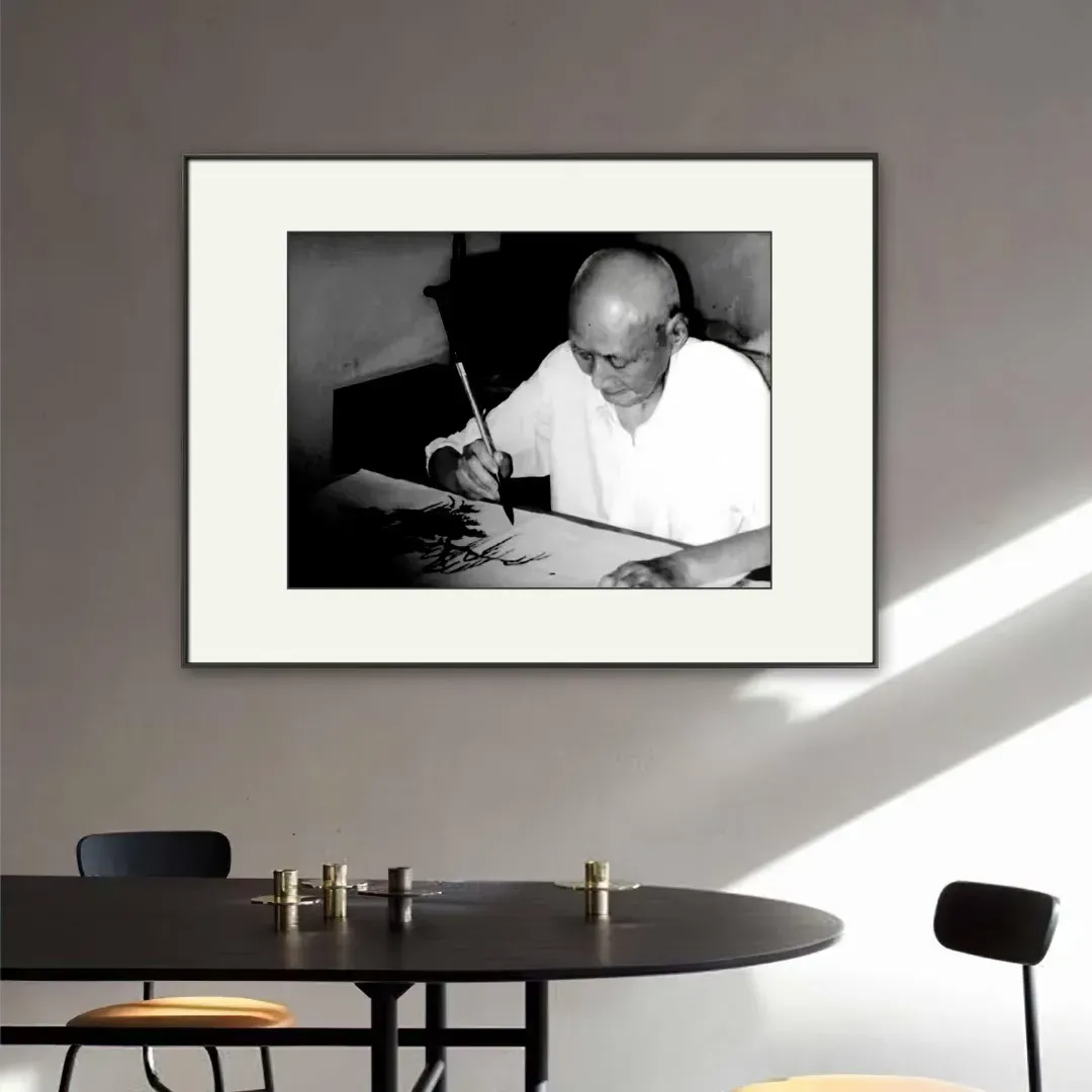 顧強先早年作《世人》言「世人欲笑汝頑癡,炊爨余閑筆一枝」,晚年賦《莫怪》道「丹青得意須毫縱,豈必謙謙句繩規」,兩首自題詩串起其藝術生涯從「執著守技」到「縱筆寫心」的心境轉折。而他九十三歲的絕筆山水之作,恰是將詩中的「頑癡」苦心與「毫縱」灑脫融於筆墨的終極結晶,在簡淨的畫幅間,讓詩心與墨韻相映成輝,寫出了「人畫俱老」的本真境界。