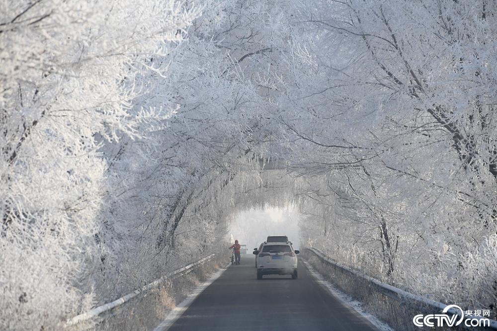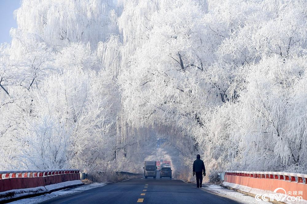 12月14日,遼寧沈陽,霧凇景觀吸引市民拍照留念。視覺中國