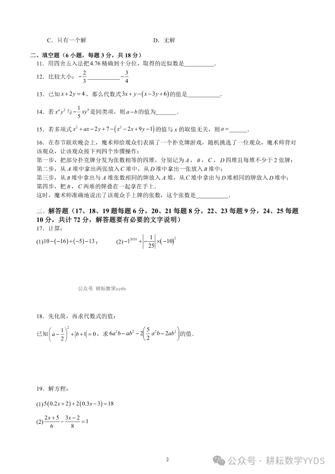 華東師大版25-26學年七年級上冊第三次月考拔尖卷