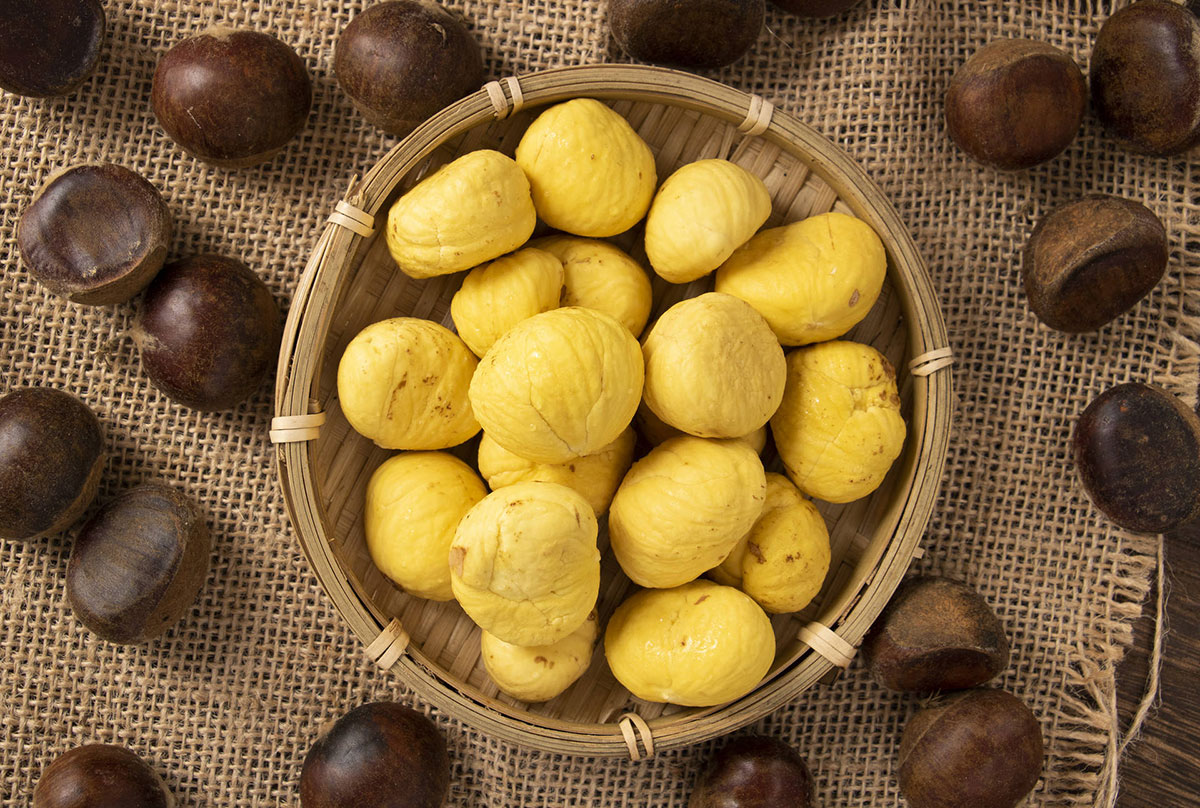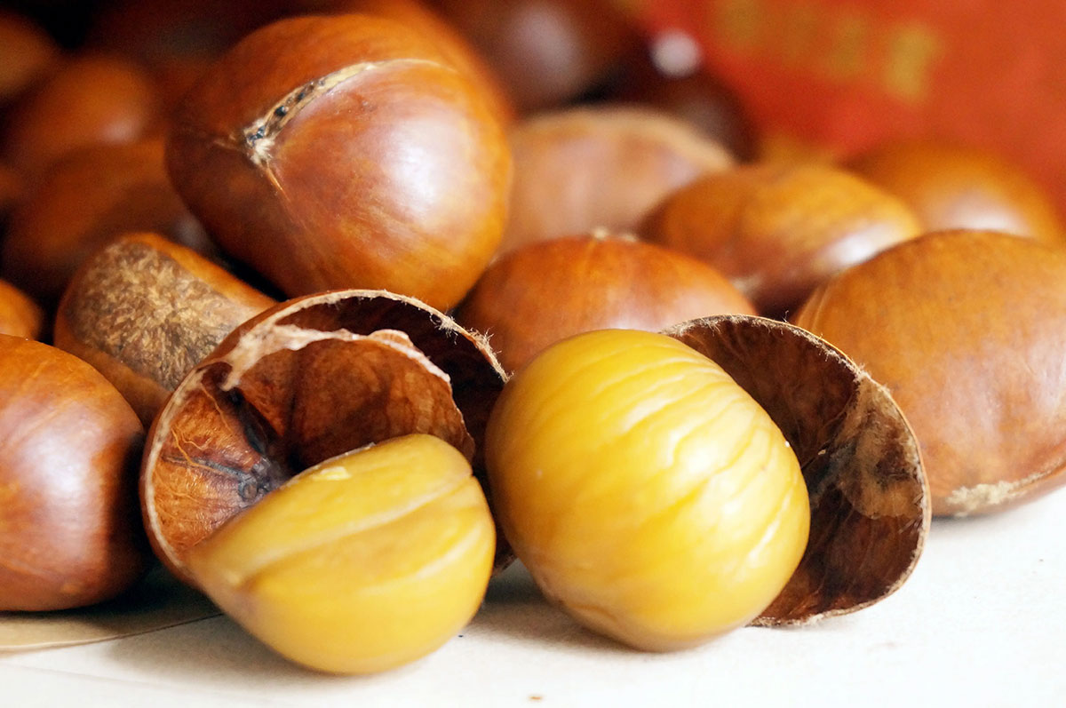 栗子也稱板栗,為我們的冬日生活增添了無限溫暖與甜蜜,早已成為生活中不可或缺的一部分。忘記了什么時候開始,冬天就要吃栗子,仿佛從小時候就沒斷過。其實栗子的食用史要比我們所能想象得要久遠得多。人們根據河姆渡與半坡村等新石器時代遺址發現的板栗化石來推算,早在六七千年之前,老祖宗們便已經嚴選出了這小果子。而到了周朝時,人們已經開始栽種板栗,可見其已被廣泛認可。在浪漫的典籍《詩經》中便有“山有漆,隰有栗”的句子,也可以看出人們對于栗子的喜愛,成為生活中的重要果品。