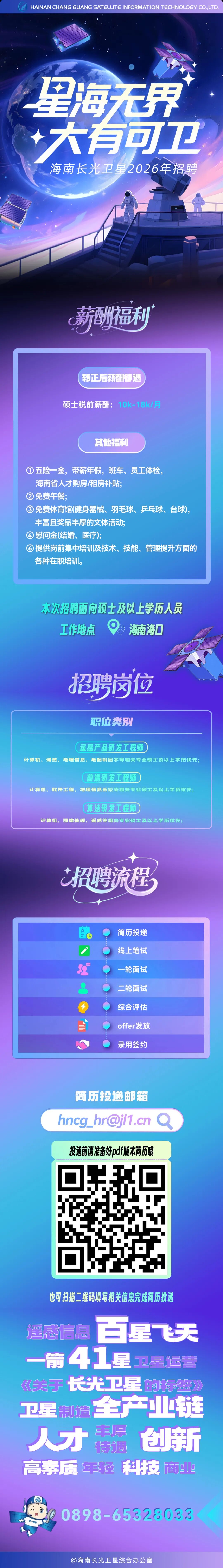 長(zhǎng)光衛(wèi)星技術(shù)股份有限公司招聘遙感產(chǎn)品研發(fā)、前端研發(fā)、算法研發(fā)等3大職類的多個(gè)崗位,碩士稅前薪酬10k-18k/月,即日起,簡(jiǎn)歷投遞至hncg_hr@jl1.cn報(bào)名,招完截止。具體如下。