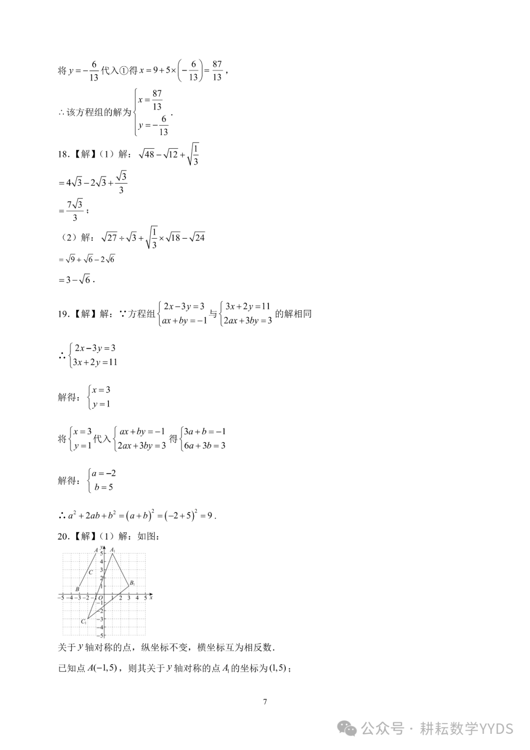 北師大版25-26學年七年級數學第三次月考模擬試卷