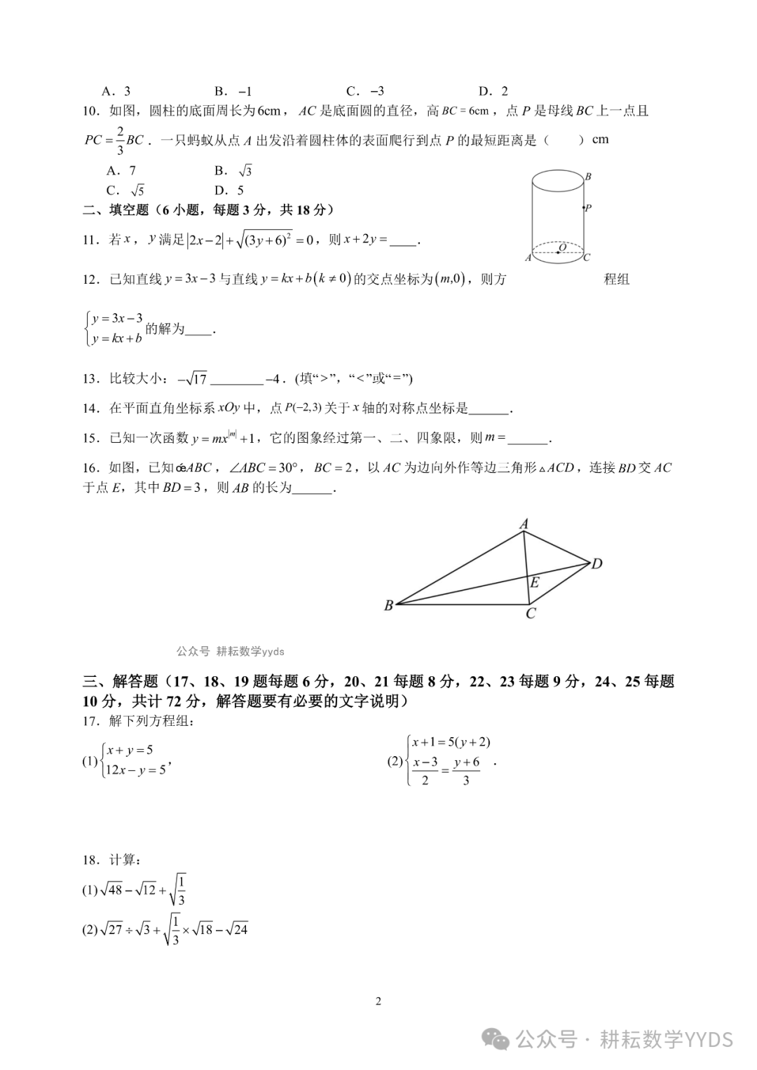 人教版25-26學年八年級上冊數學第三次月考模擬押題卷